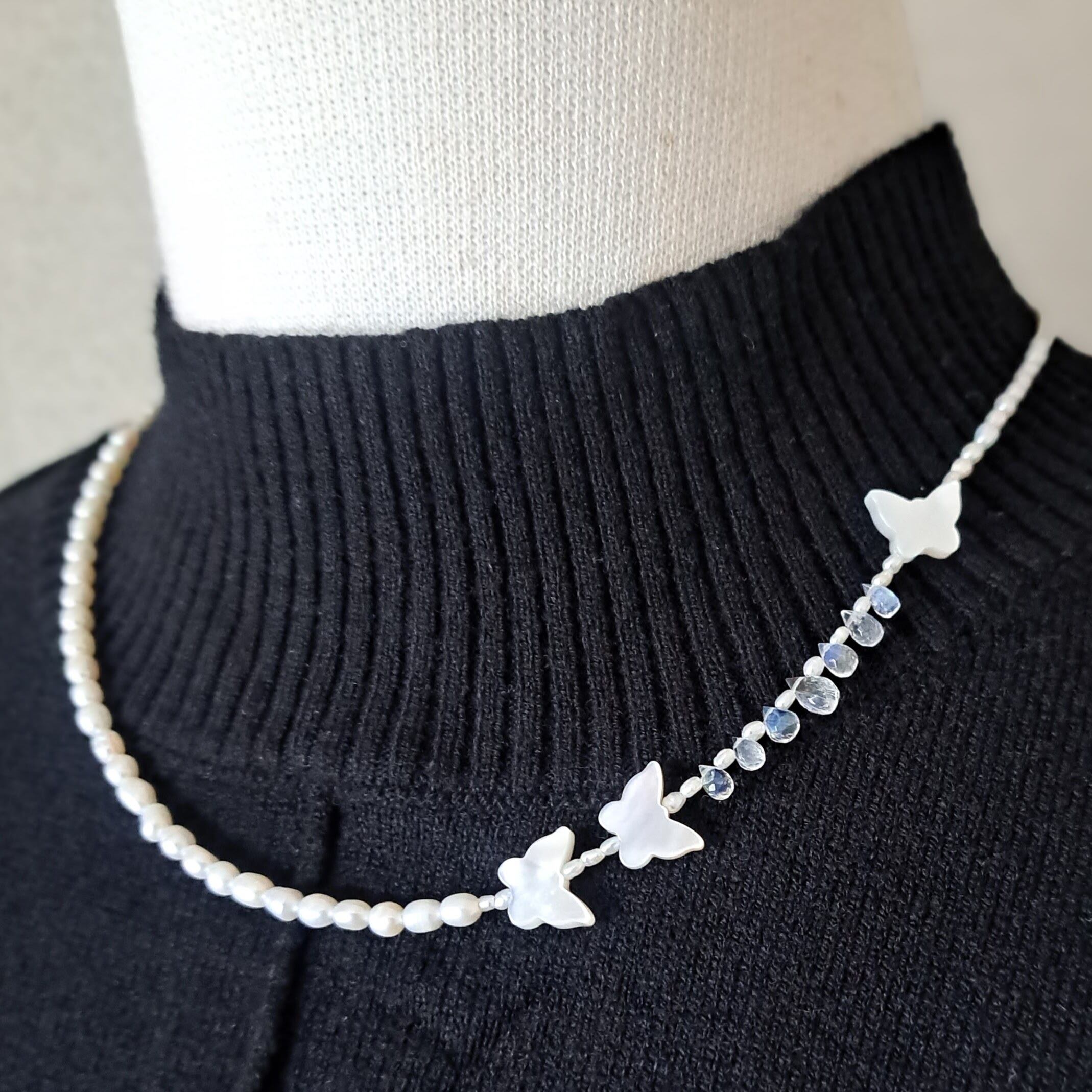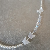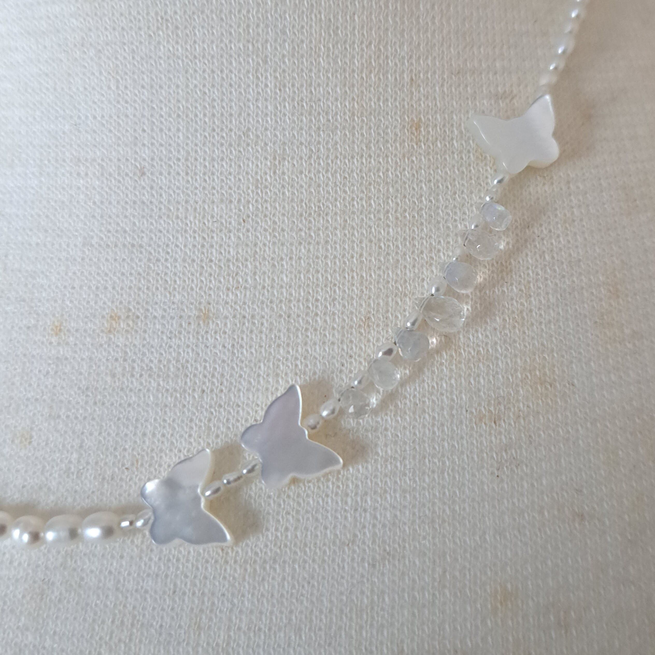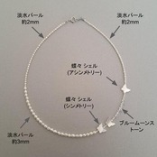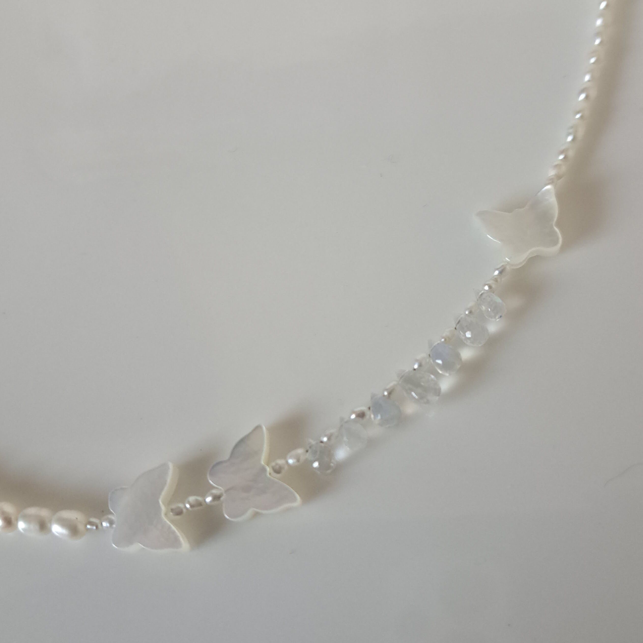 【Butterfly】蝶々型シェル×ブルームーンストーン×淡水パールネックレス MNE709