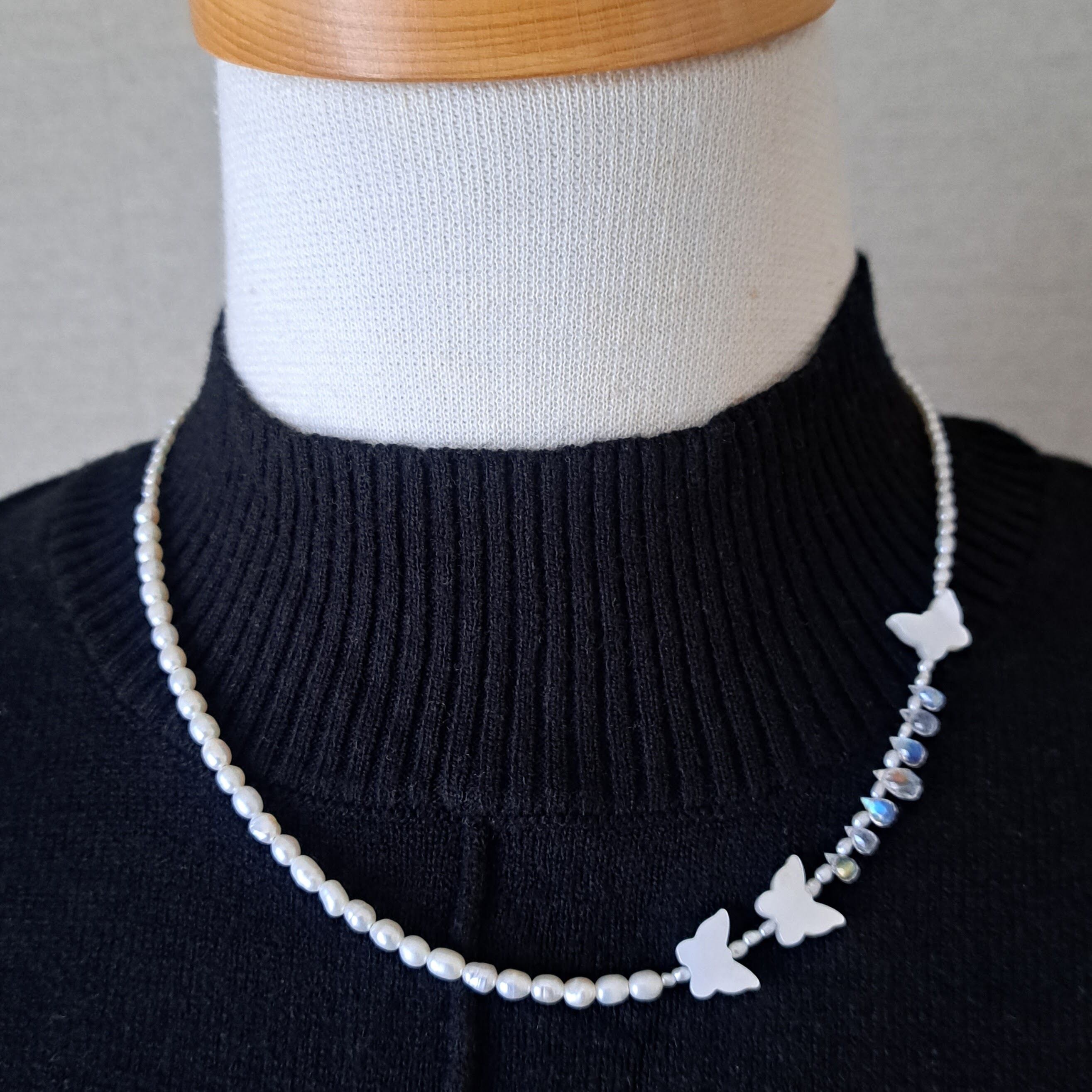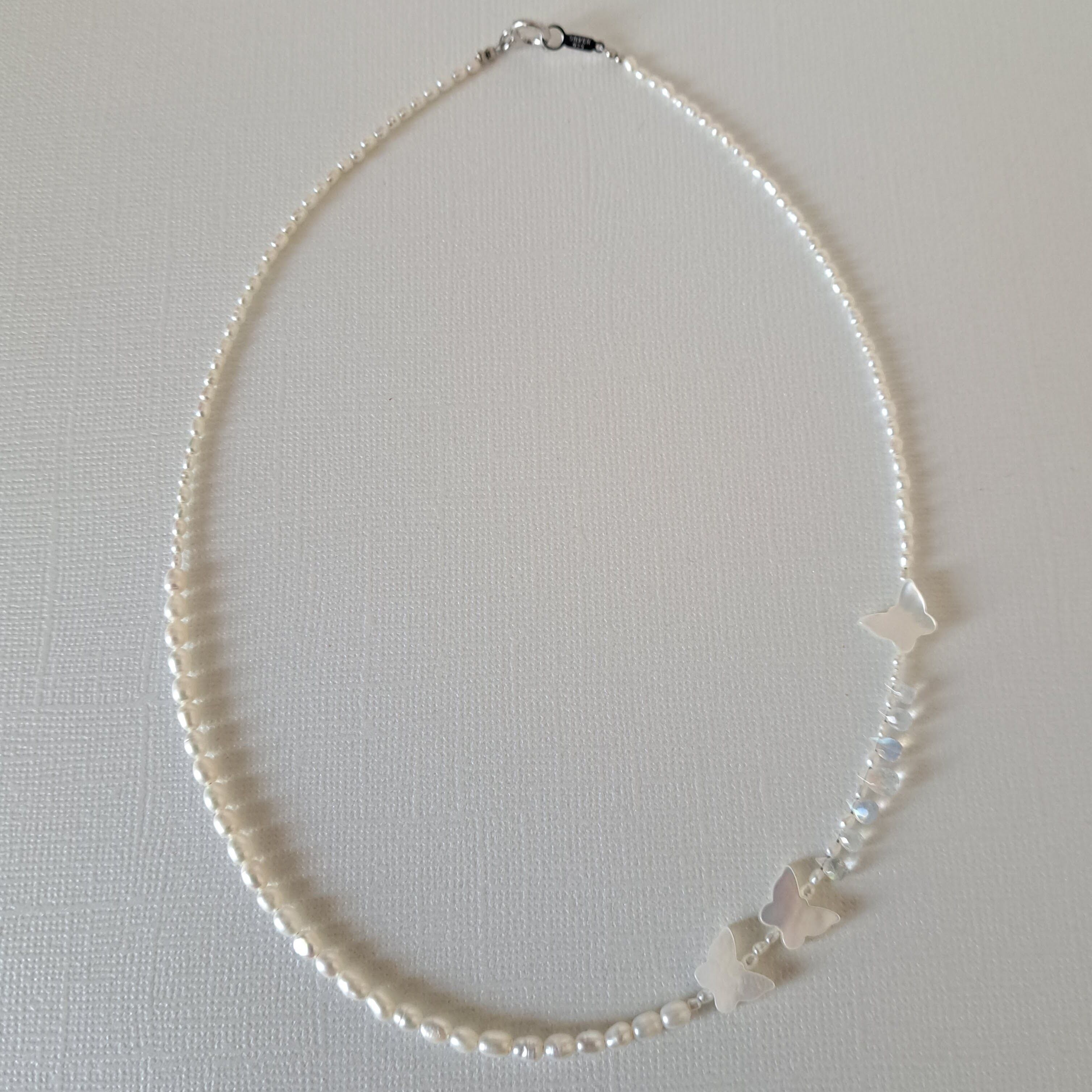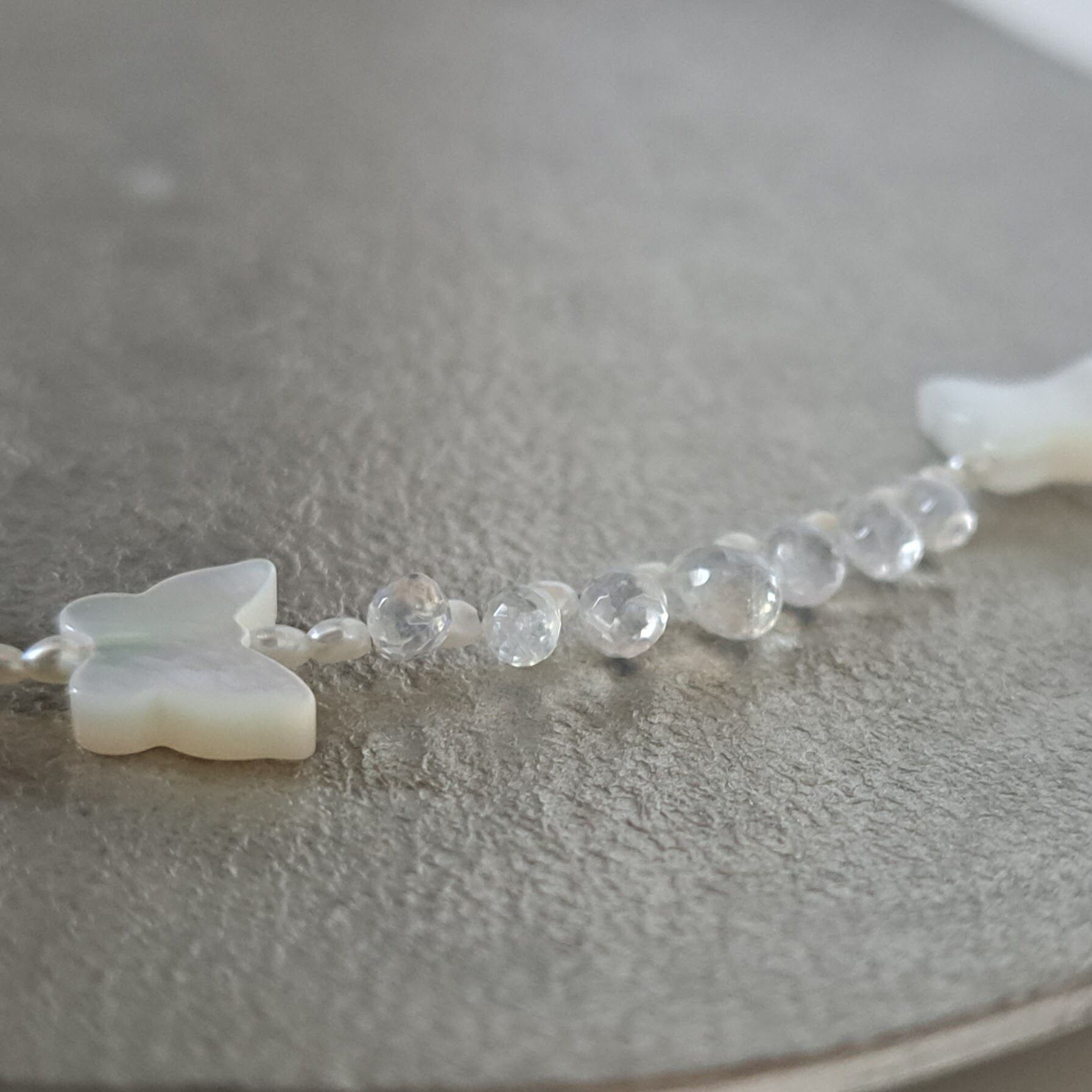 【Butterfly】蝶々型シェル×ブルームーンストーン×淡水パールネックレス MNE709