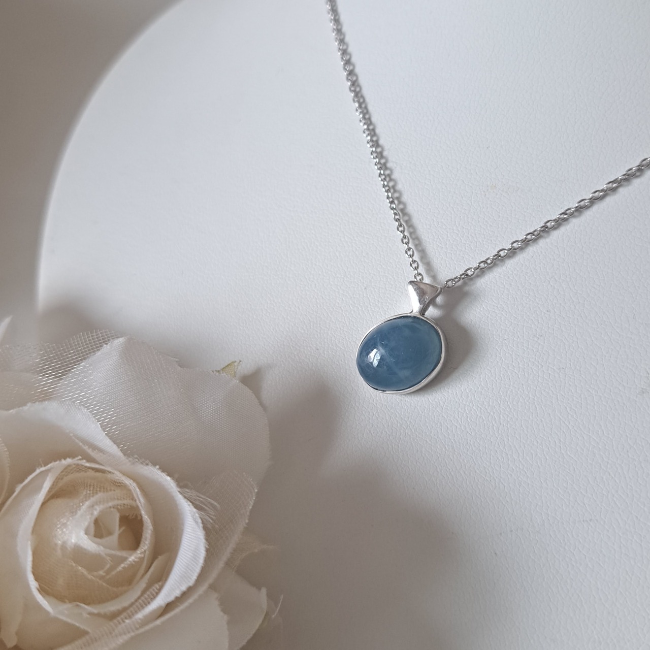 オーバルのミルキーアクアマリンは、透明感よりもやさしさが魅力。
