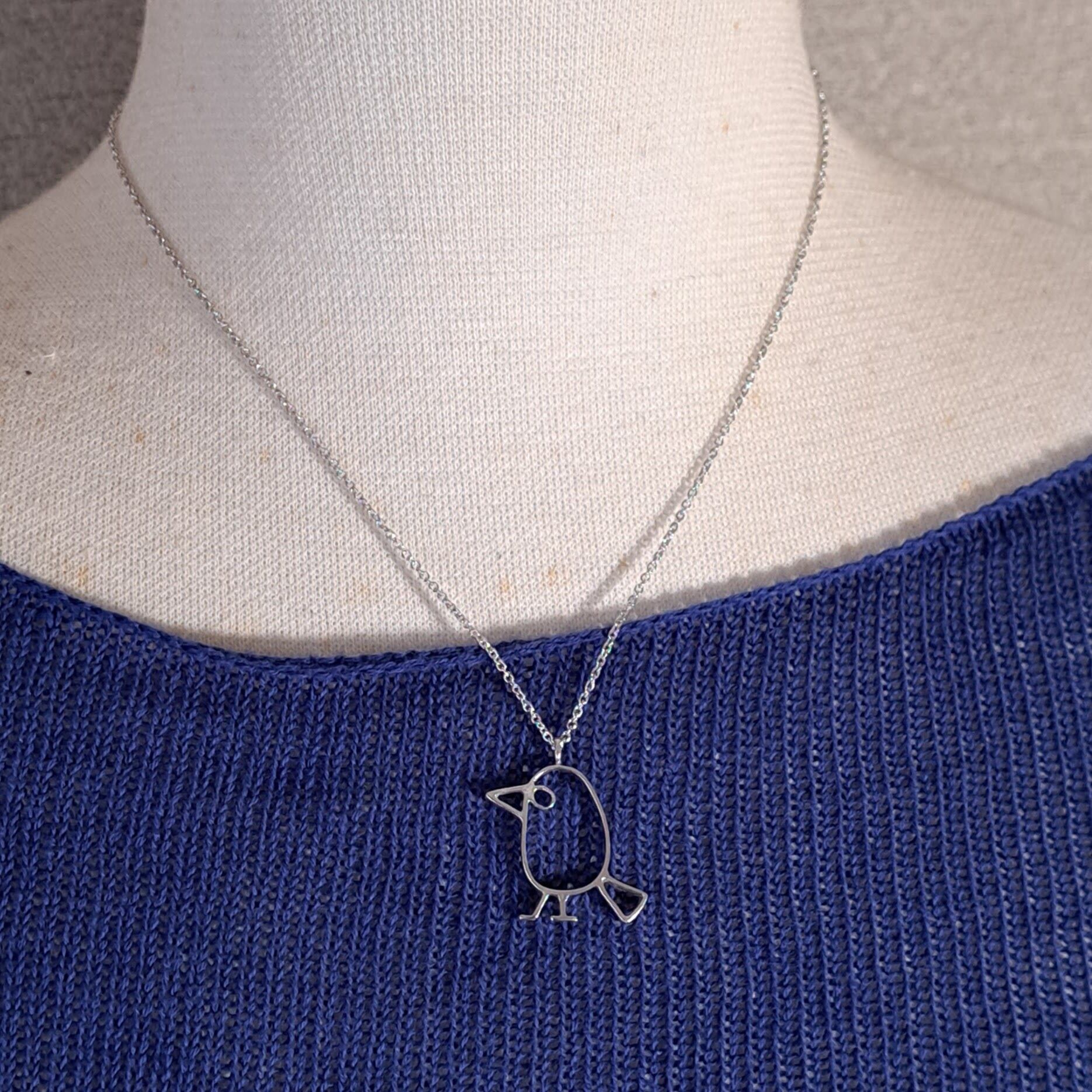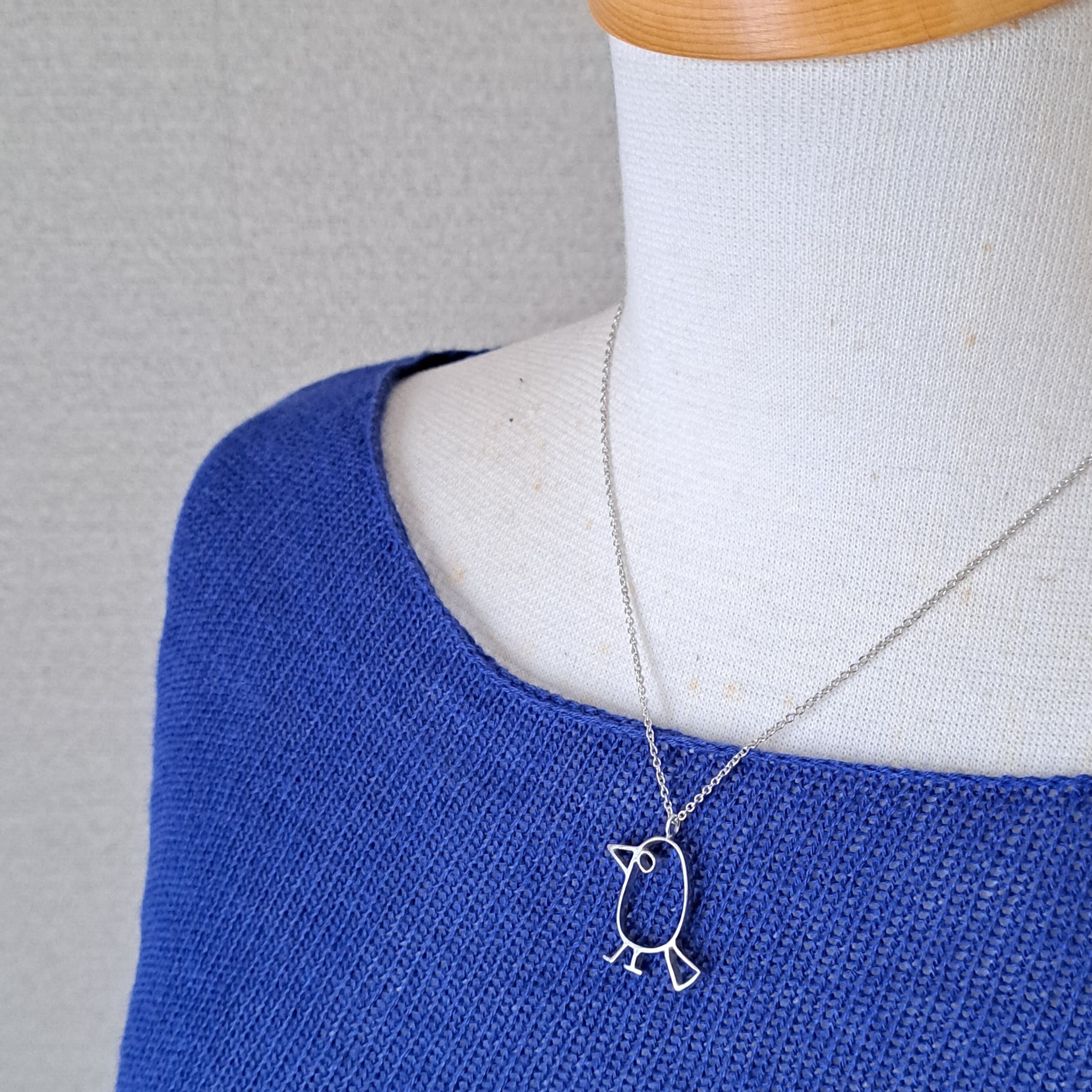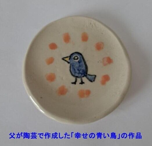 父の陶芸で描かれた素朴な「幸せの青い鳥」をモチーフにしたペンダントネックレスで、