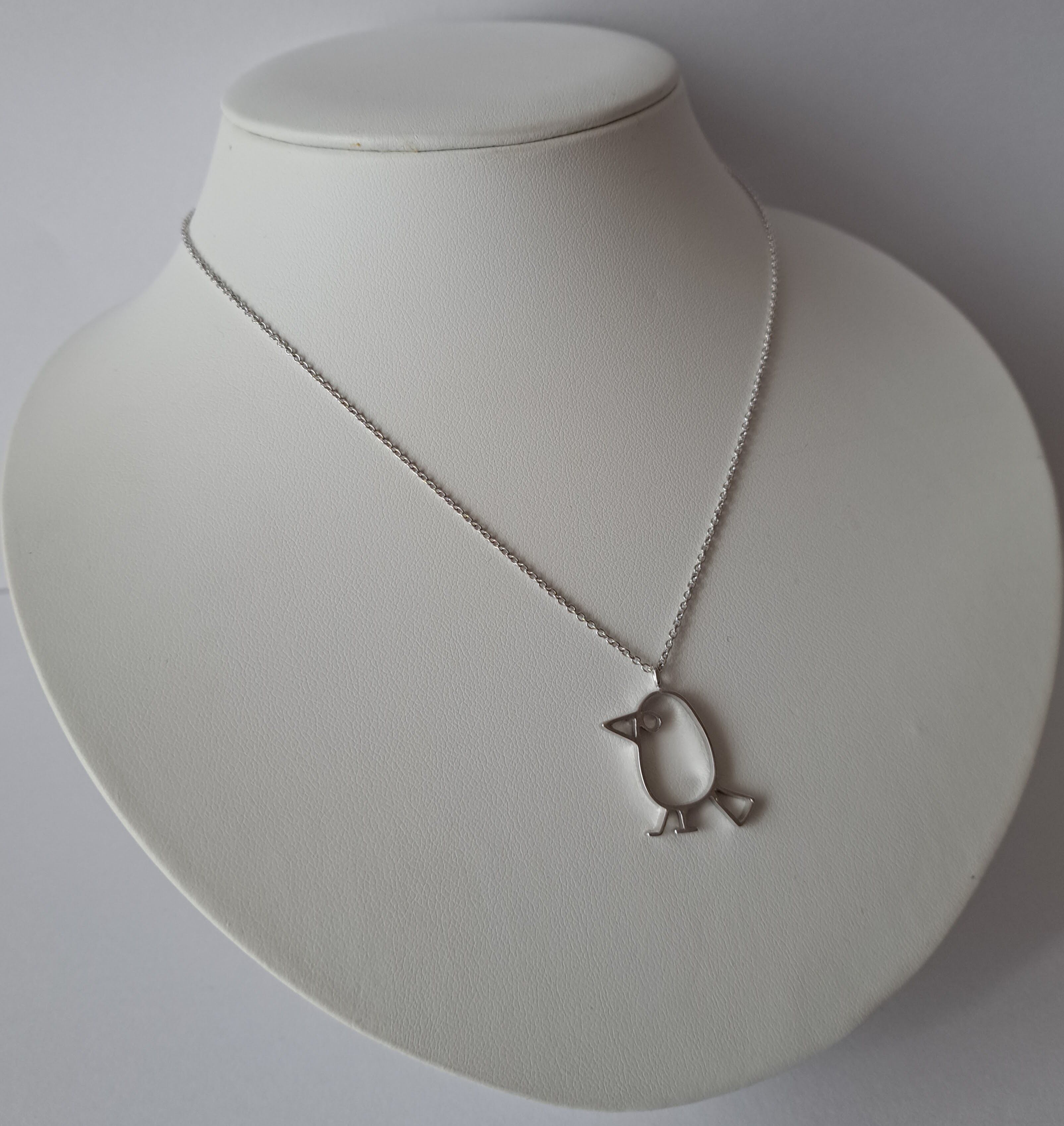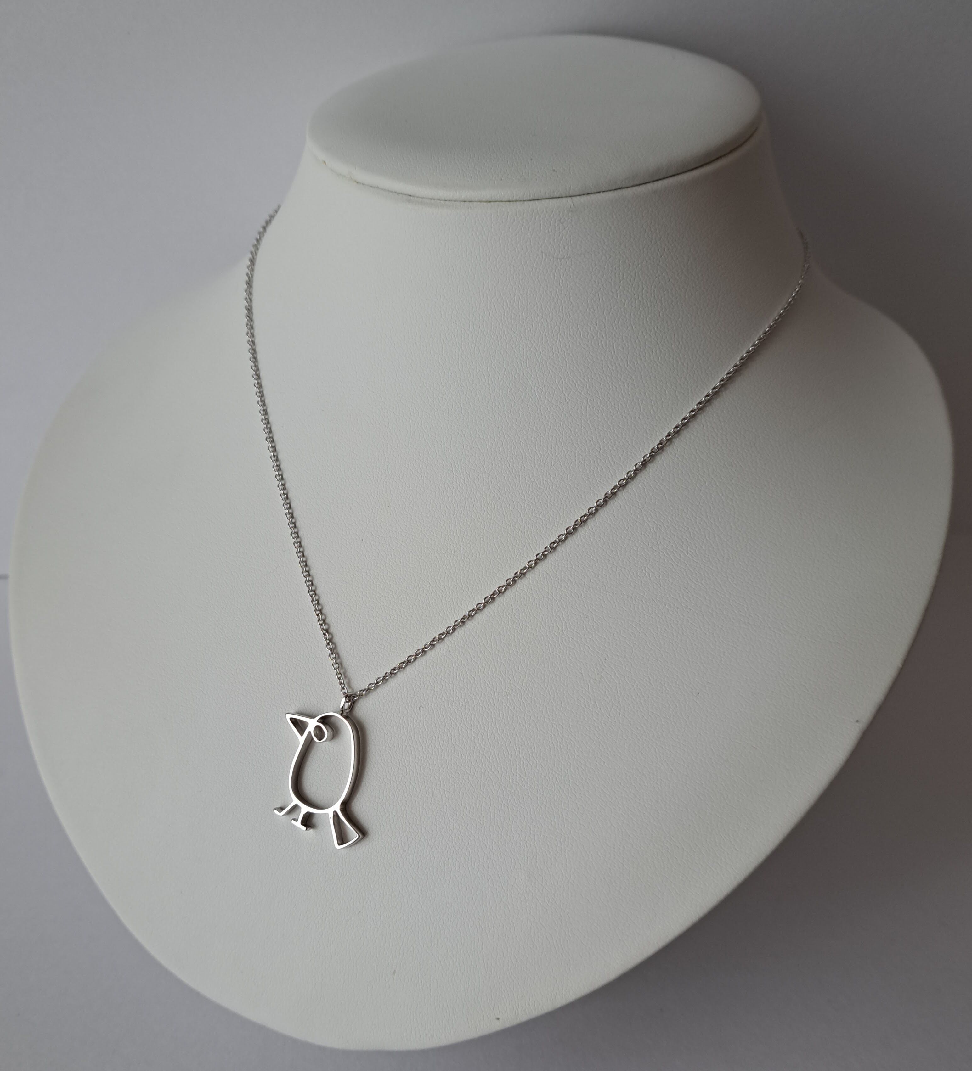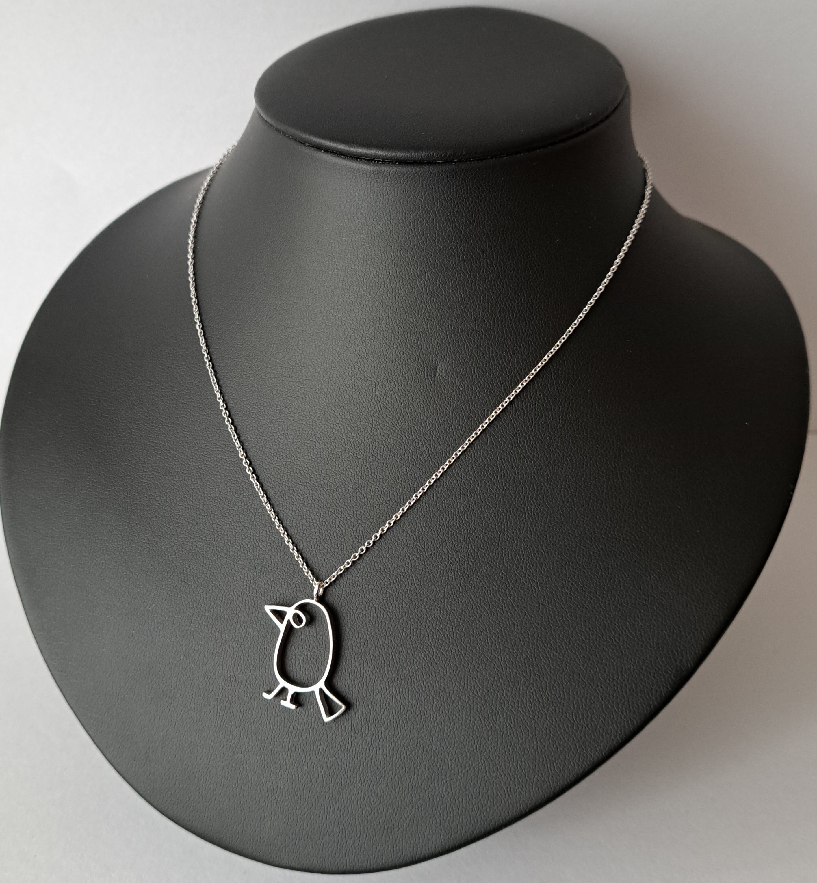 父の陶芸で描かれた素朴な「幸せの青い鳥」をモチーフにしたペンダントネックレスで、