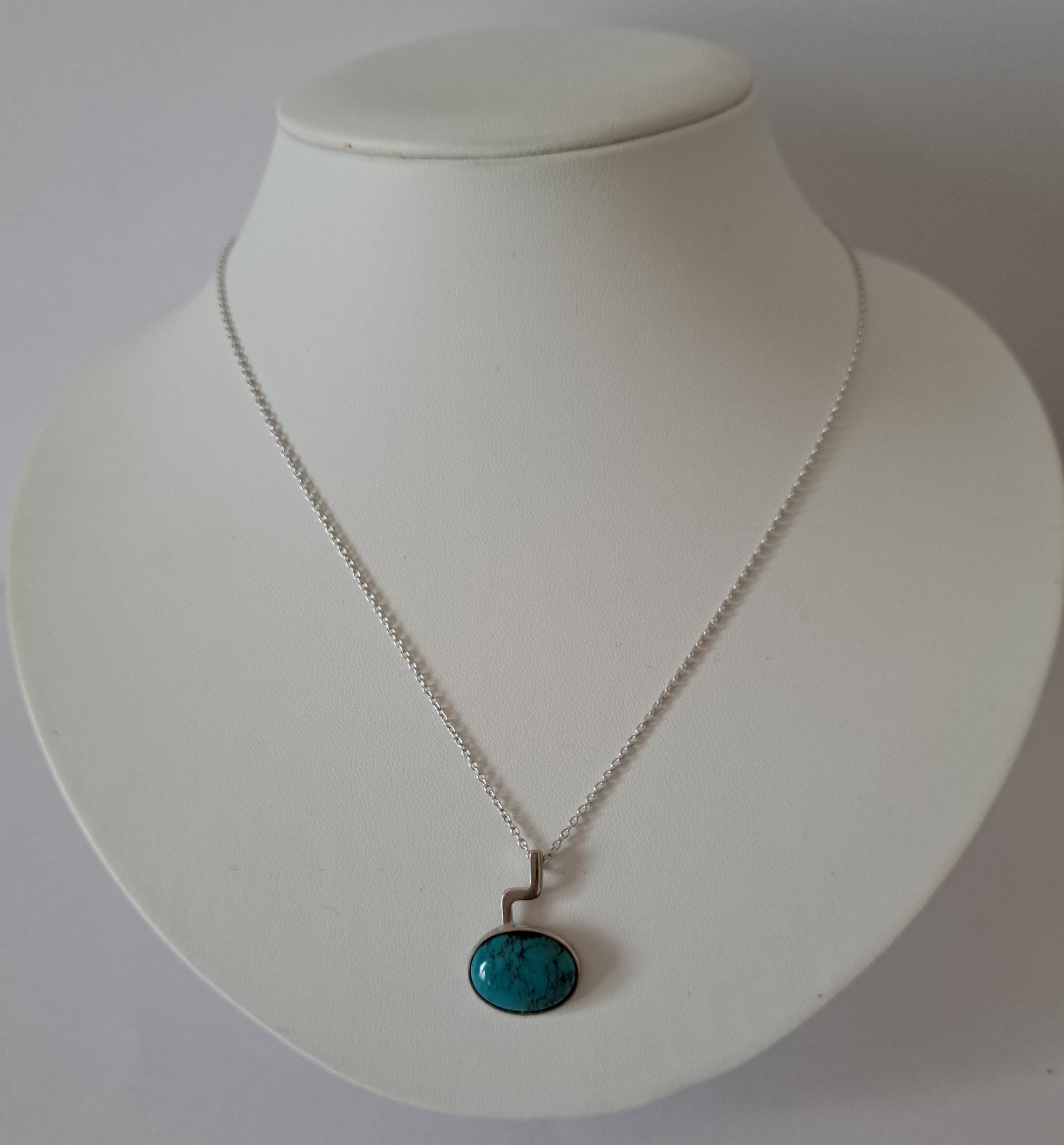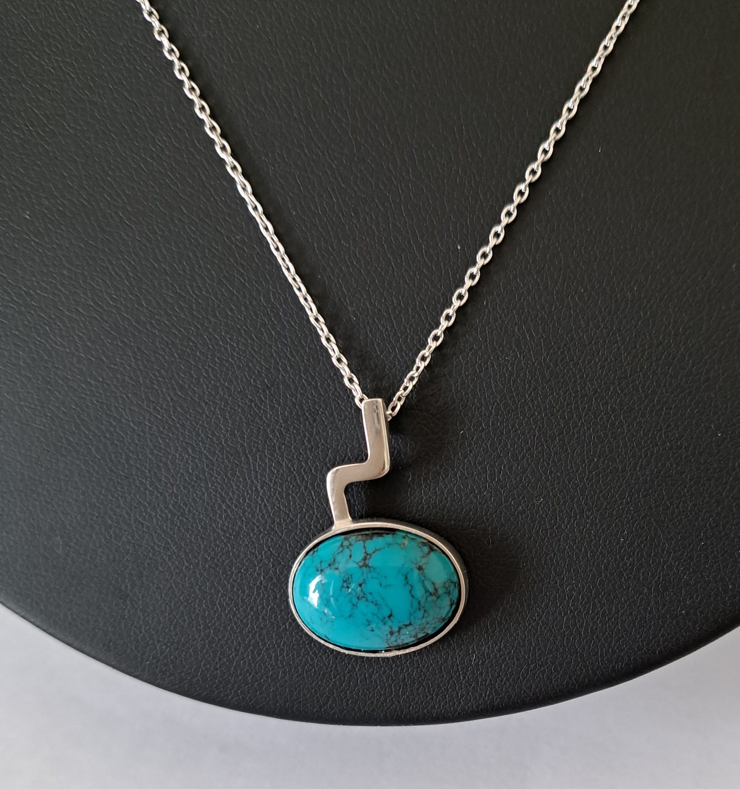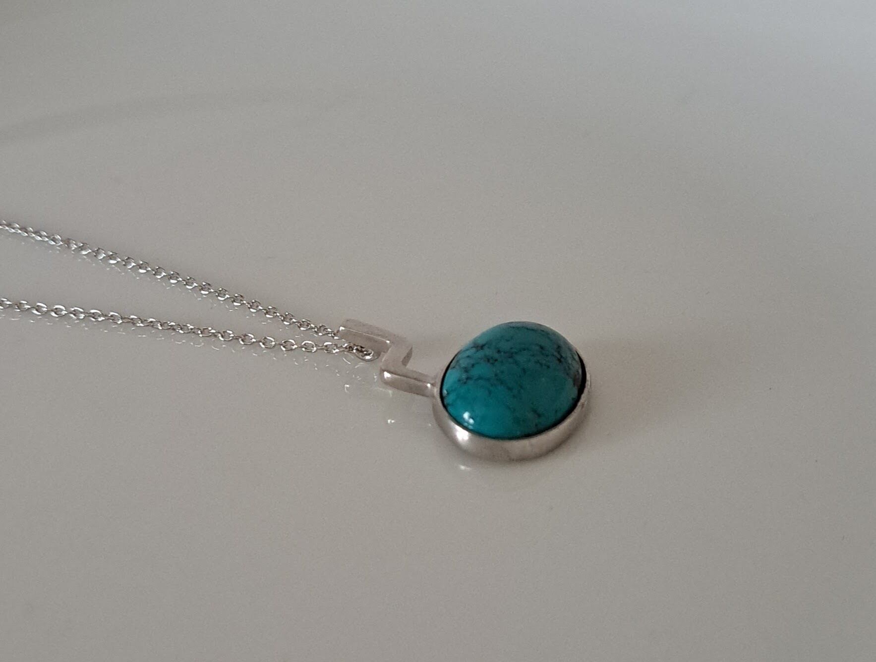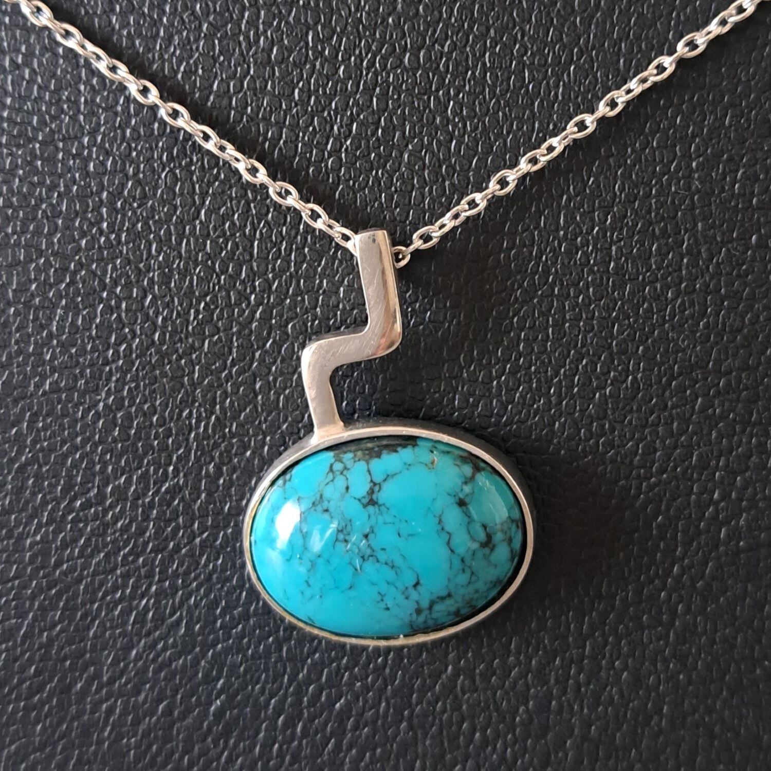 勇気や希望を象徴するターコイズ(トルコ石)とシルバー925の組み合わせがワクワクとドキドキさせそうなペンダントネックレスです。