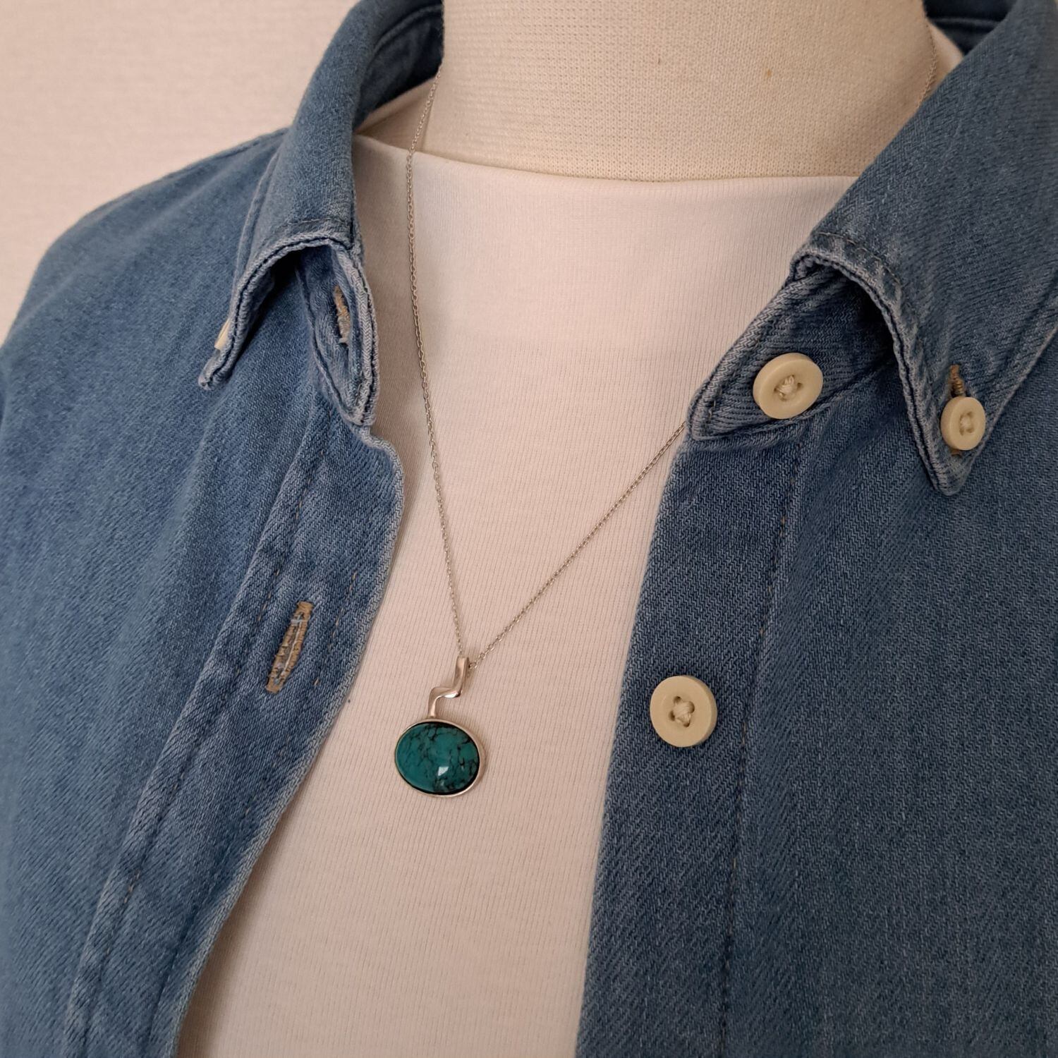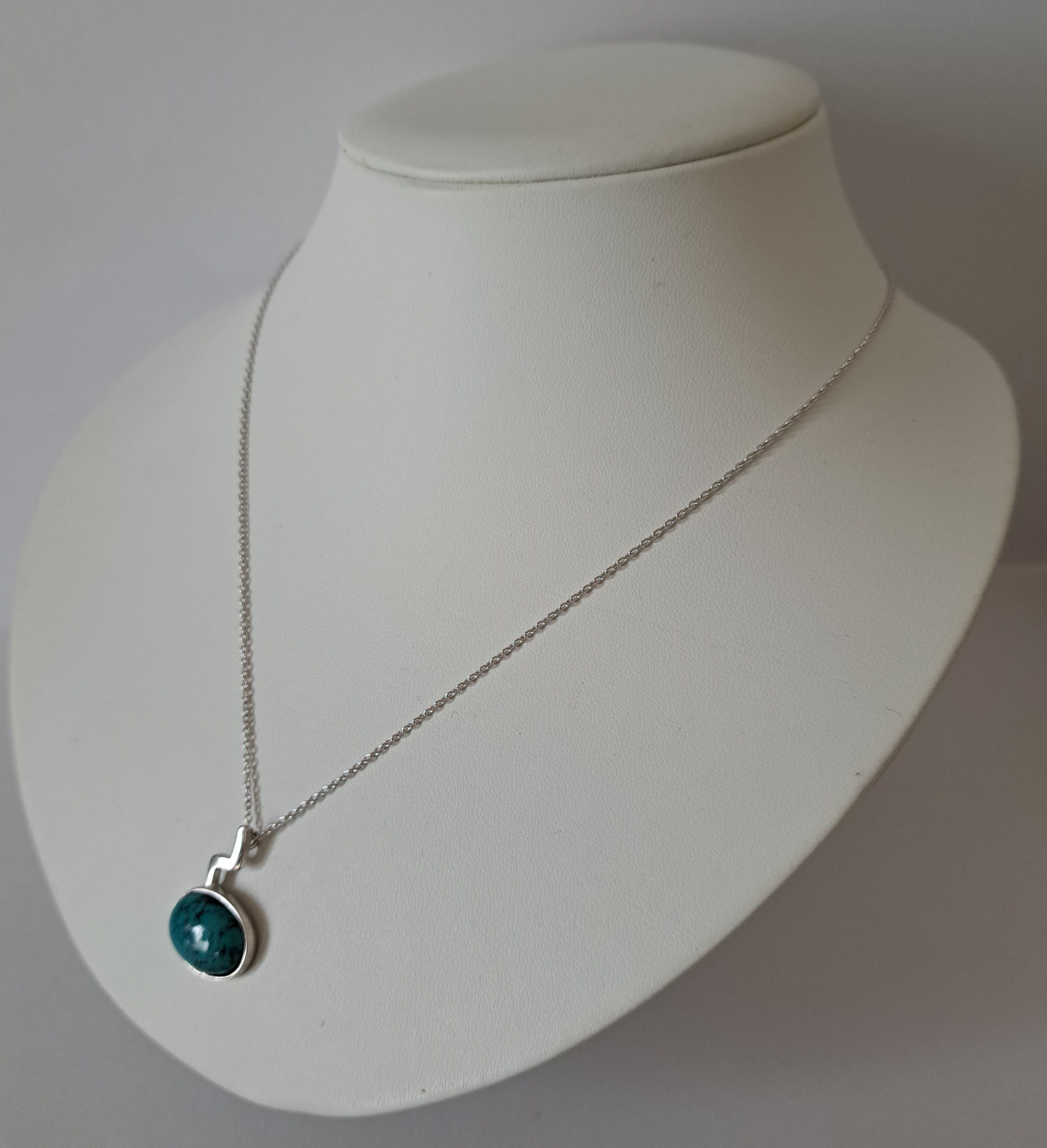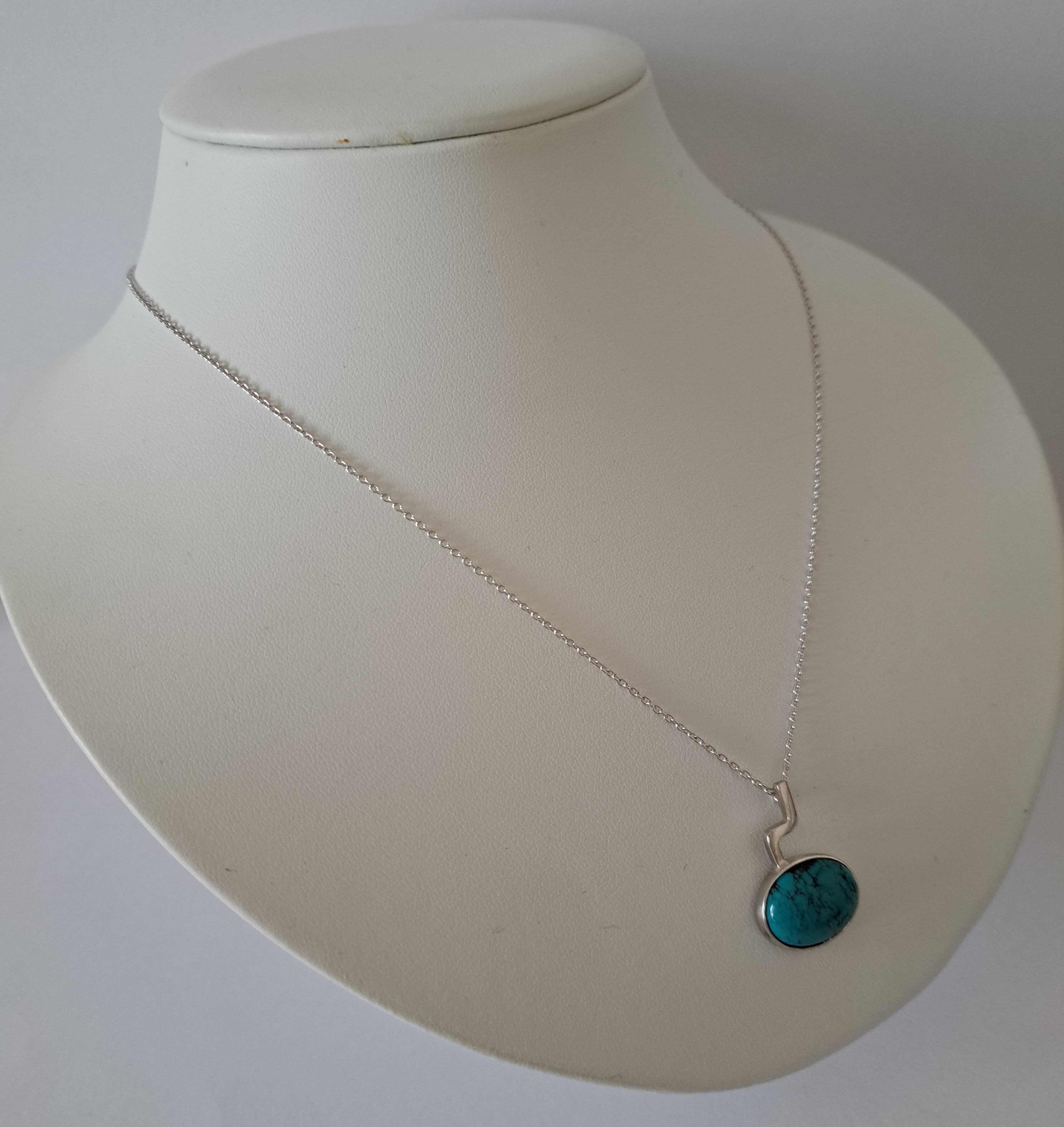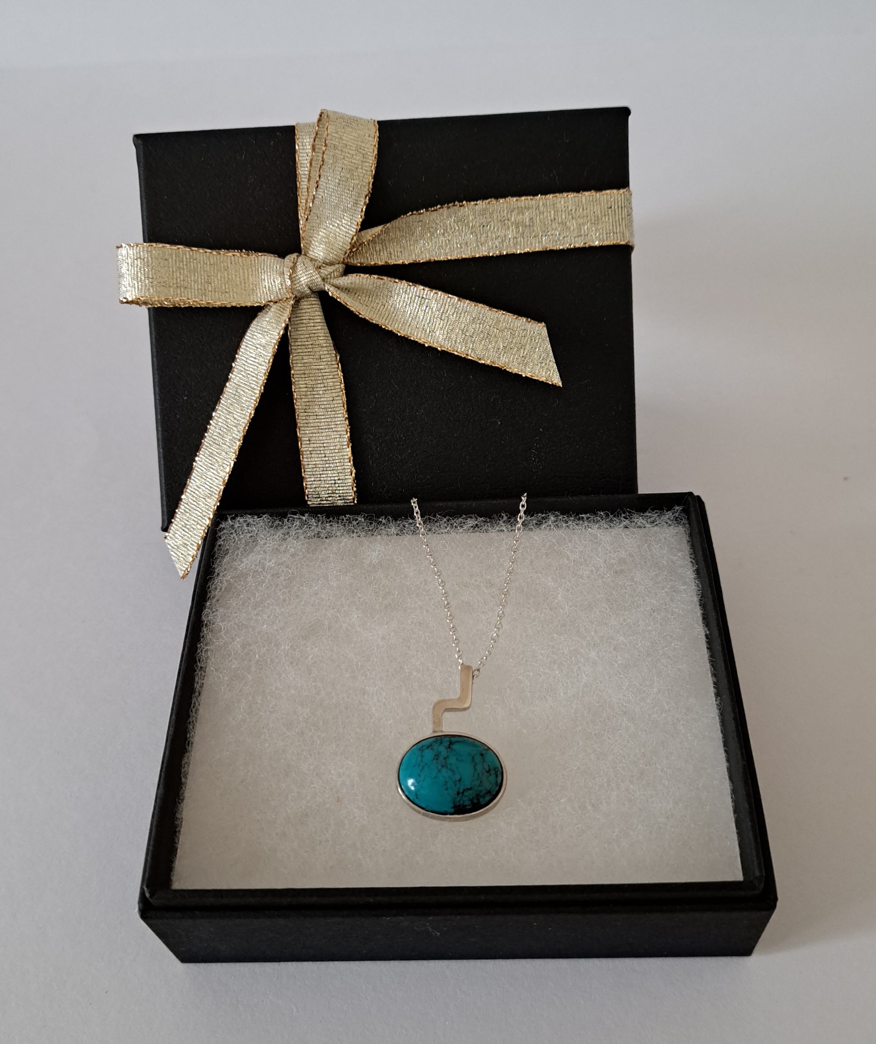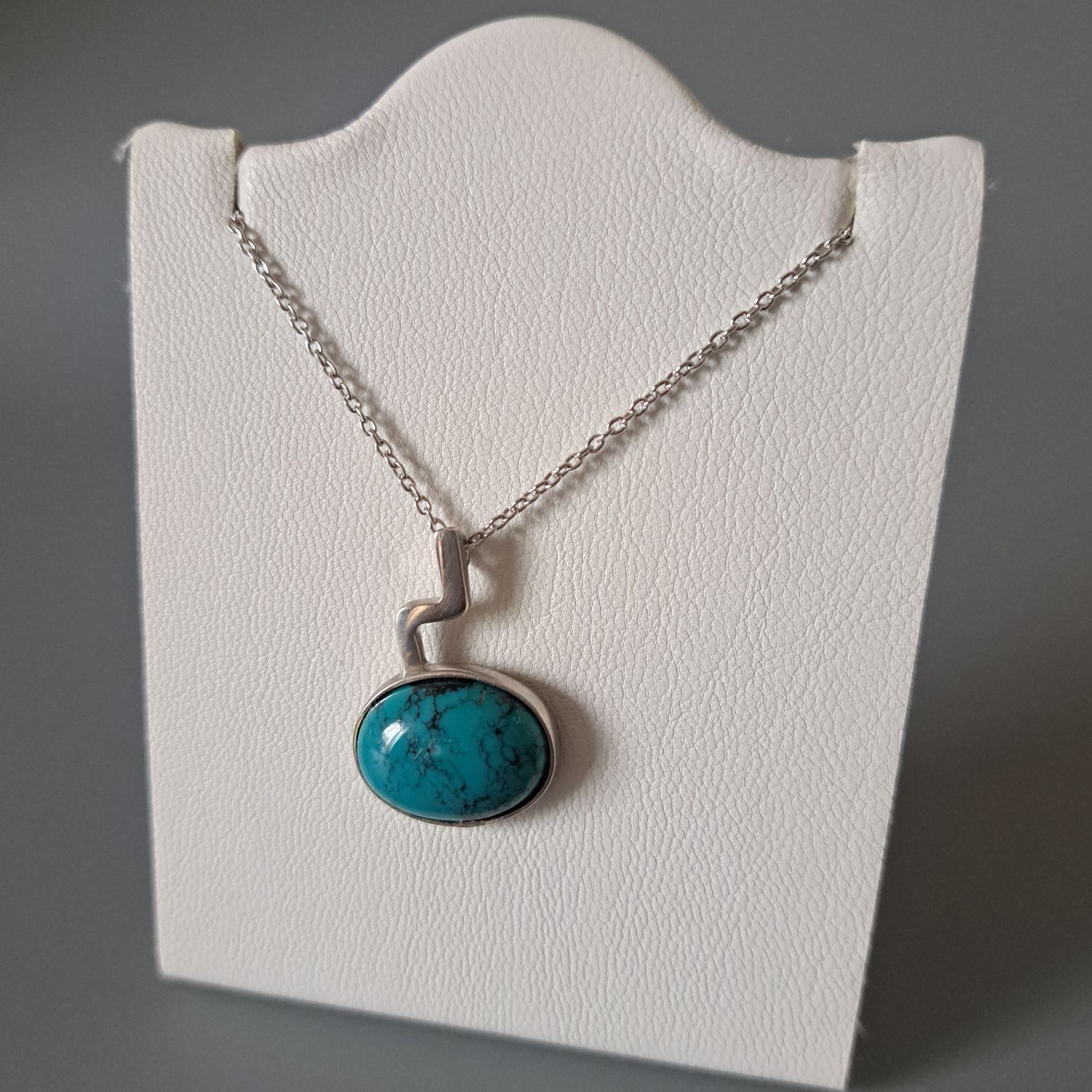 勇気や希望を象徴するターコイズ(トルコ石)とシルバー925の組み合わせがワクワクとドキドキさせそうなペンダントネックレスです。