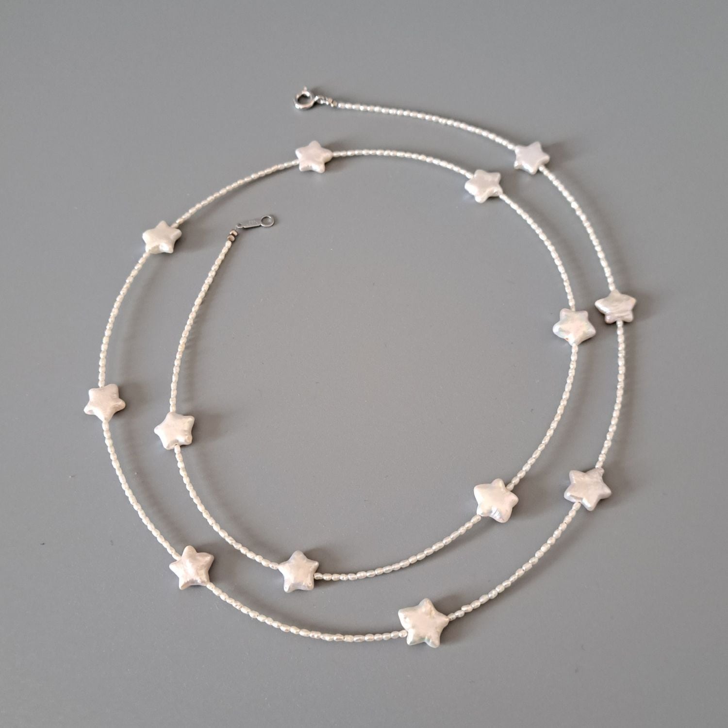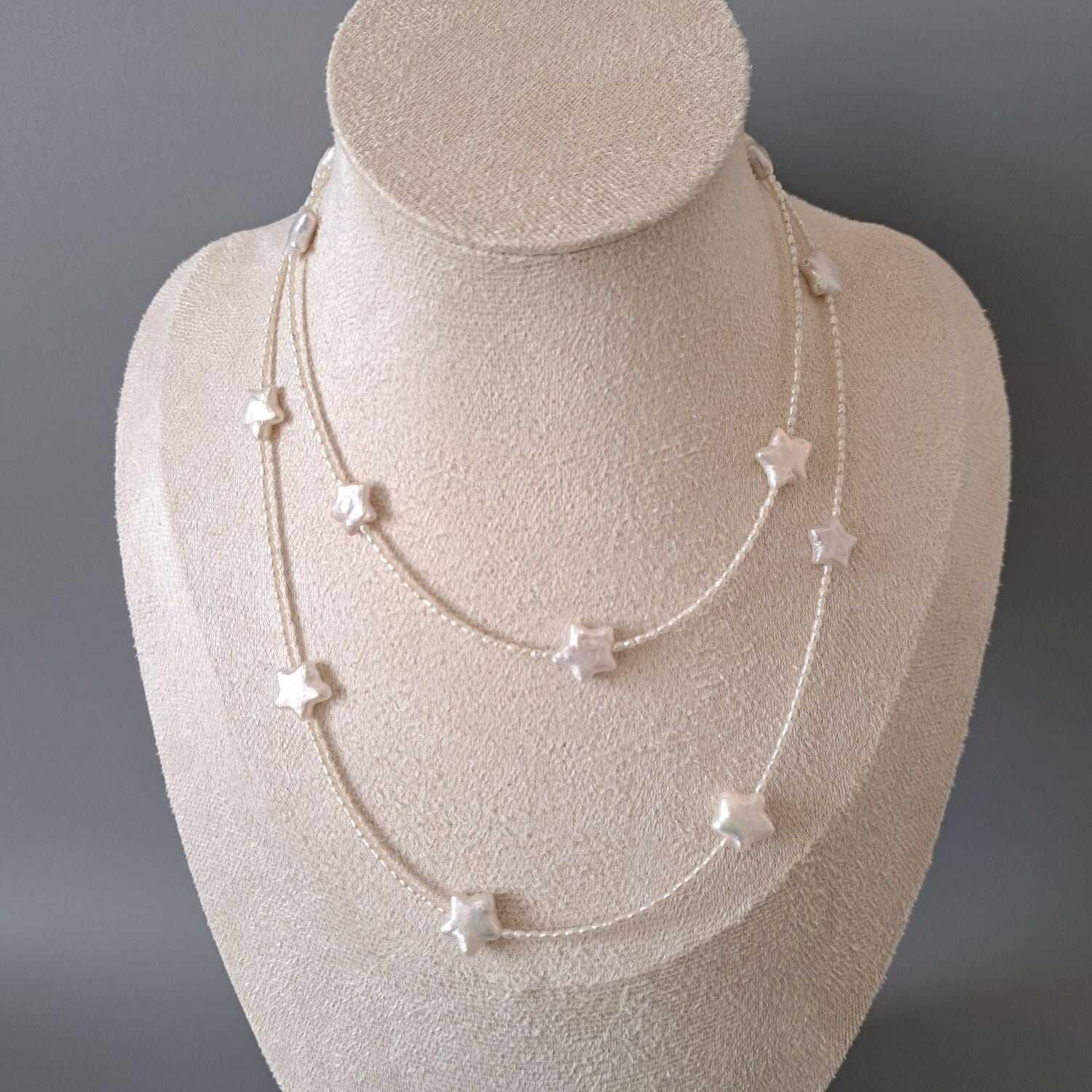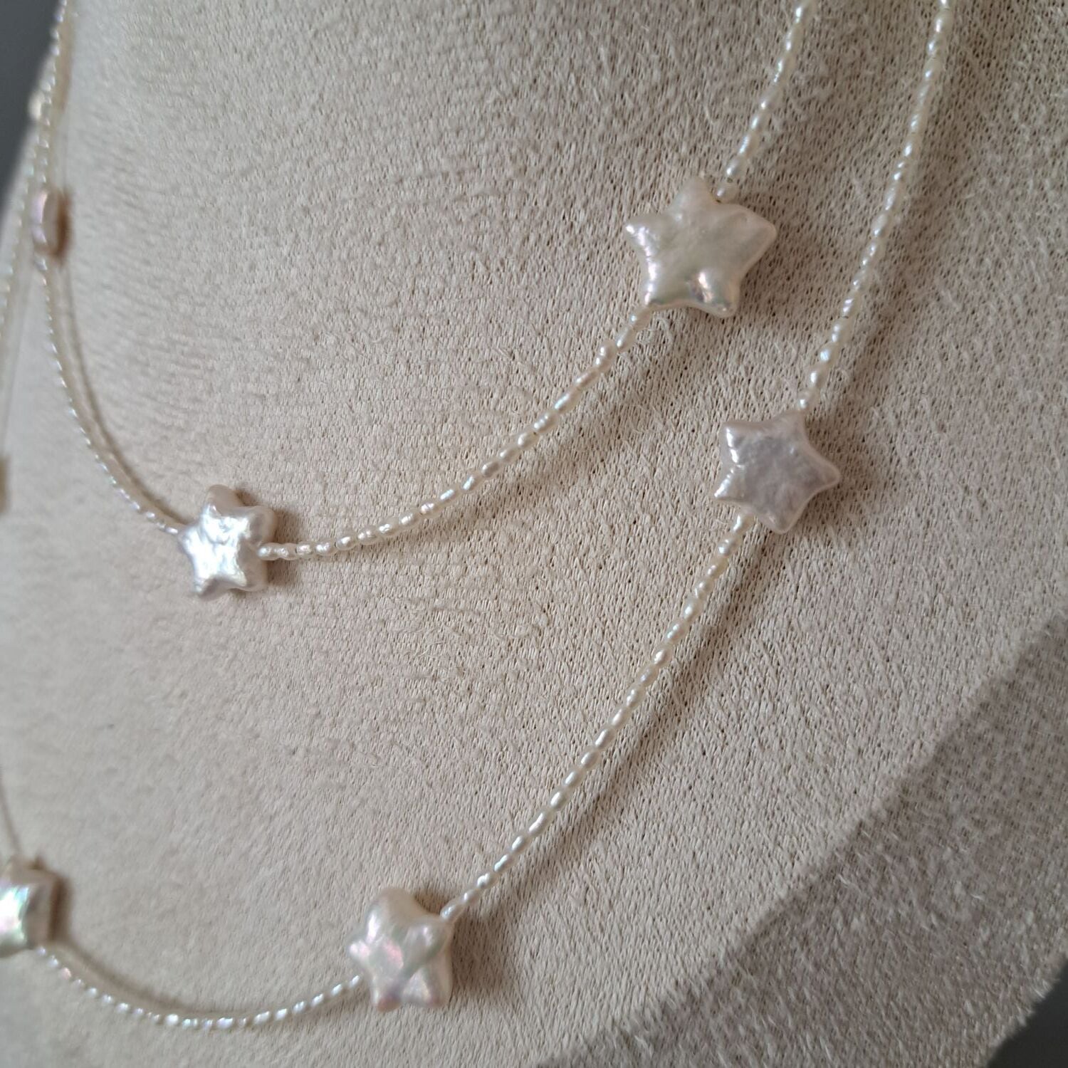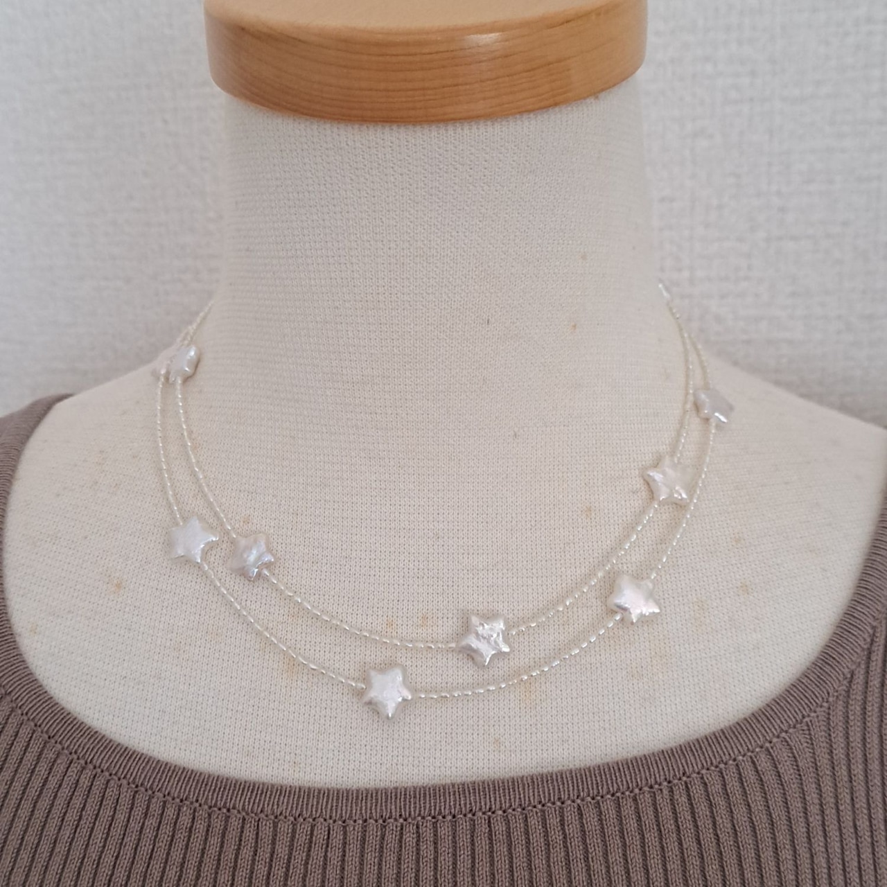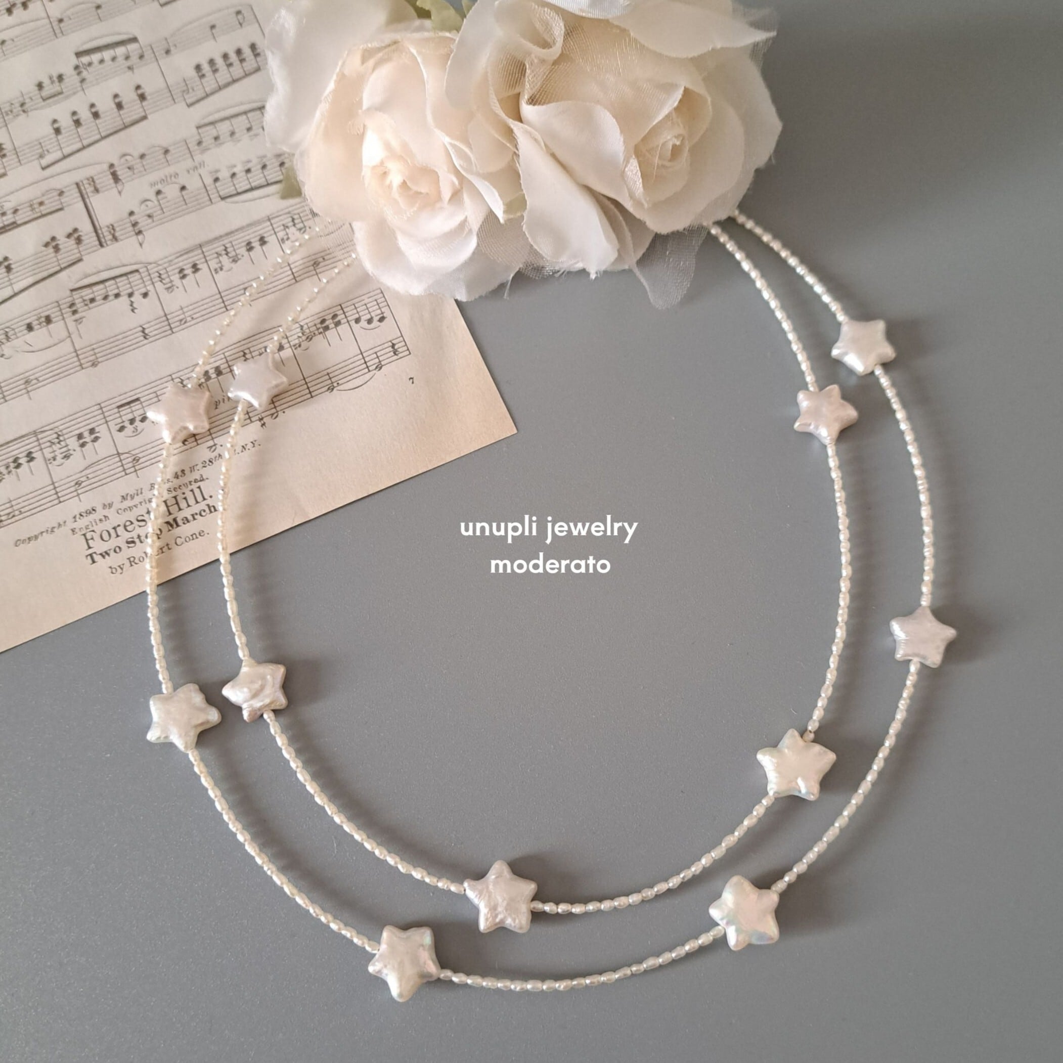 夜が静かに広がるように、淡水パールの星がひっそりと瞬く――。