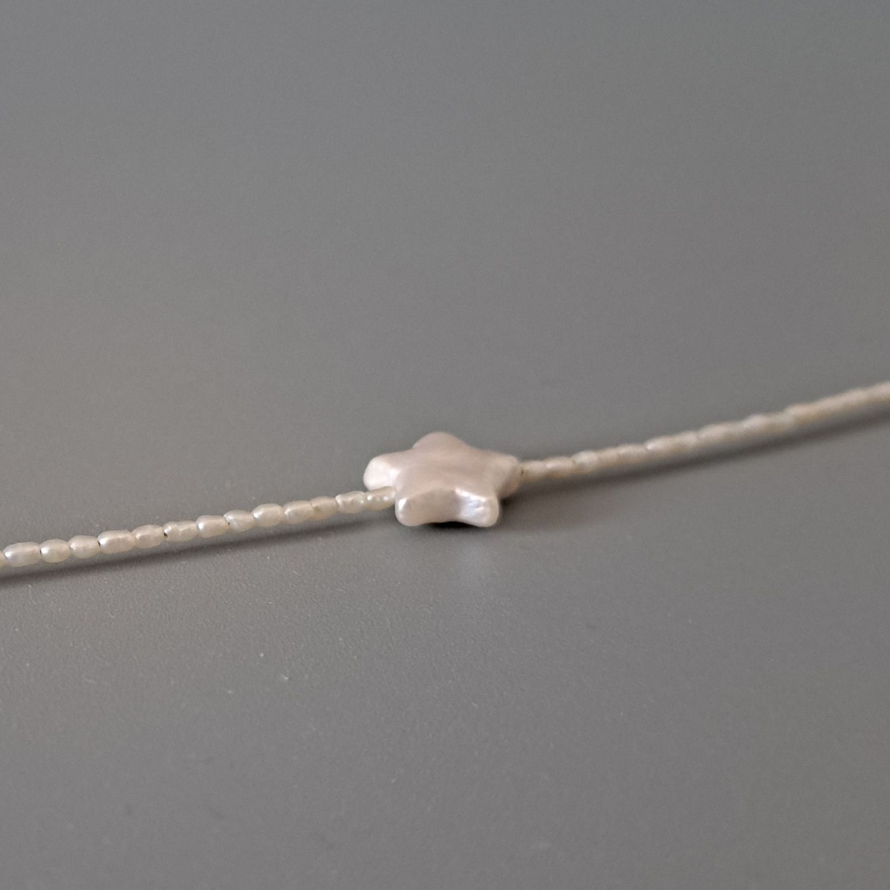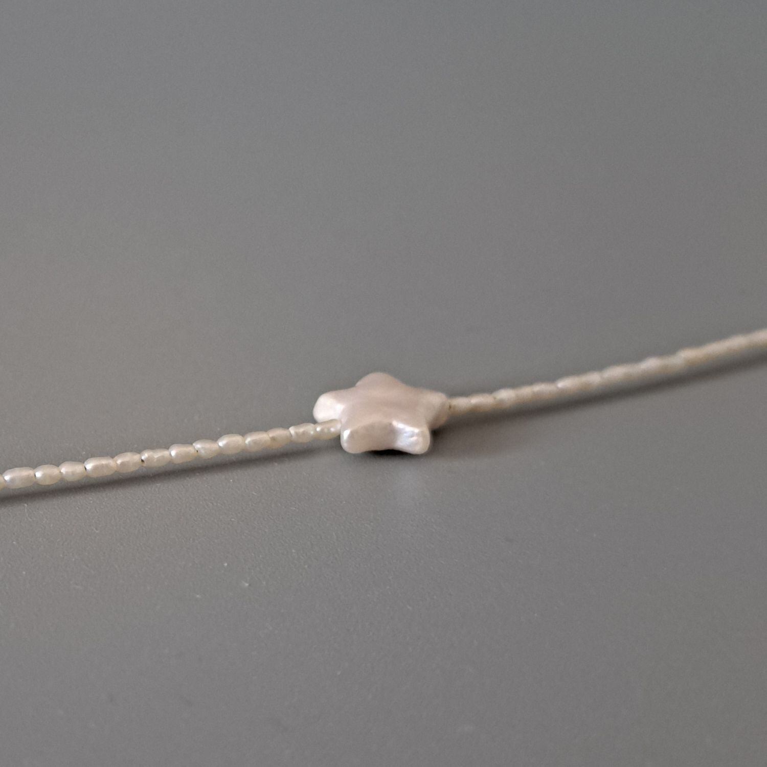 控えめな光をまとった星型パールと、小さな淡水パールを組み合わせ、