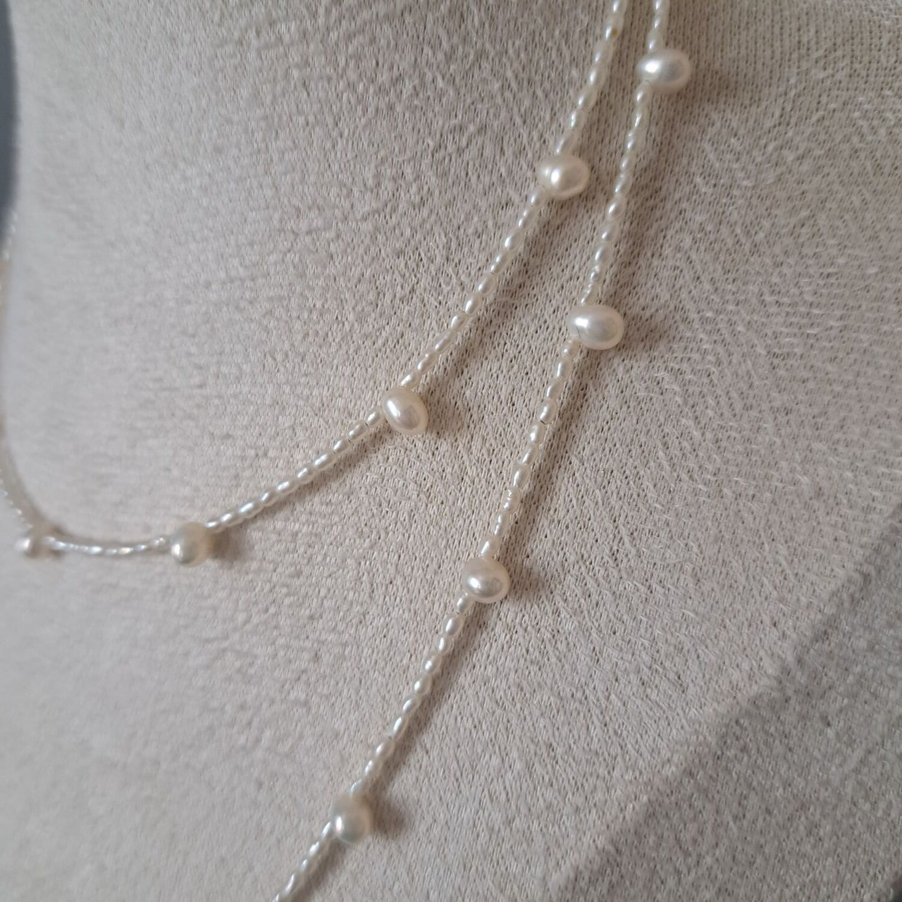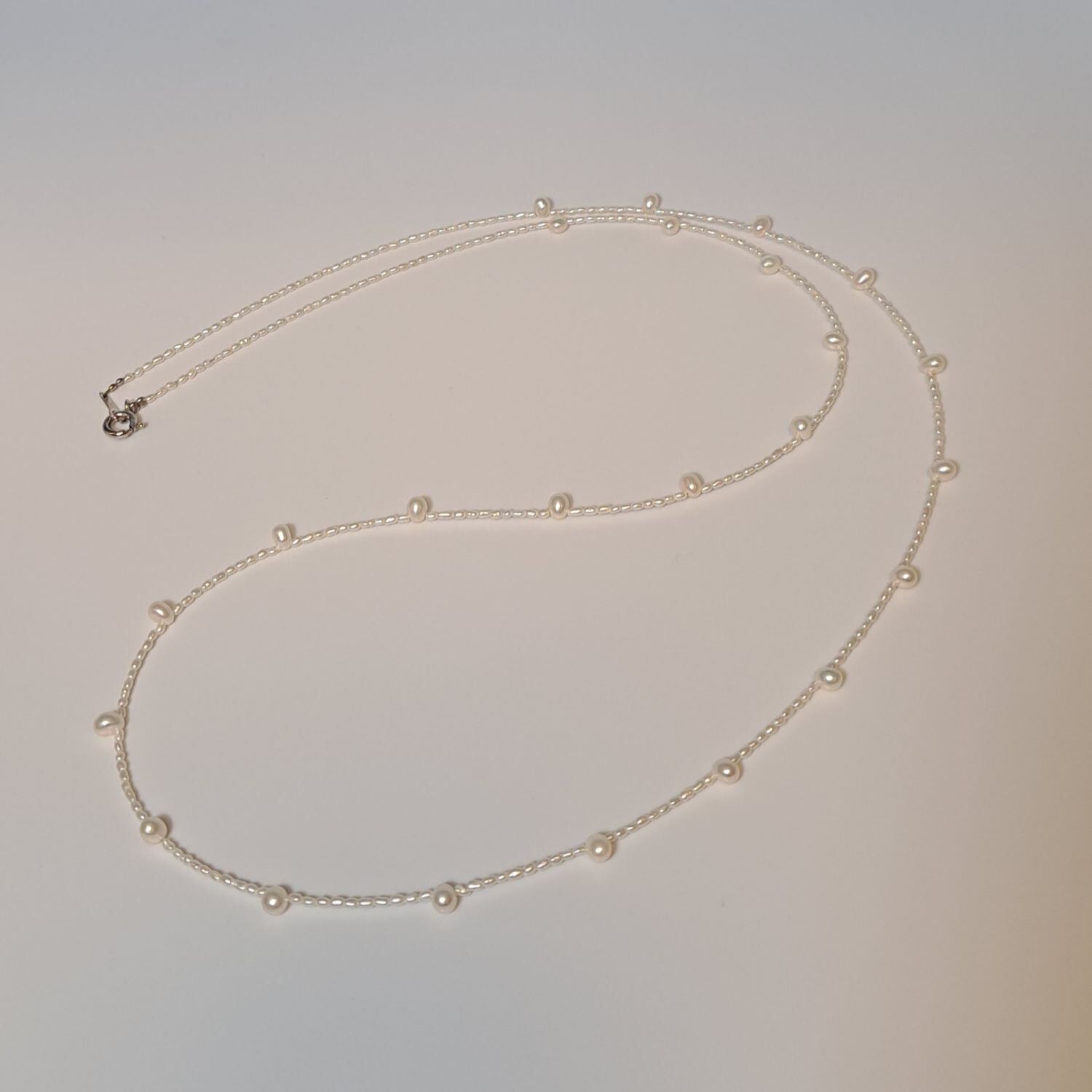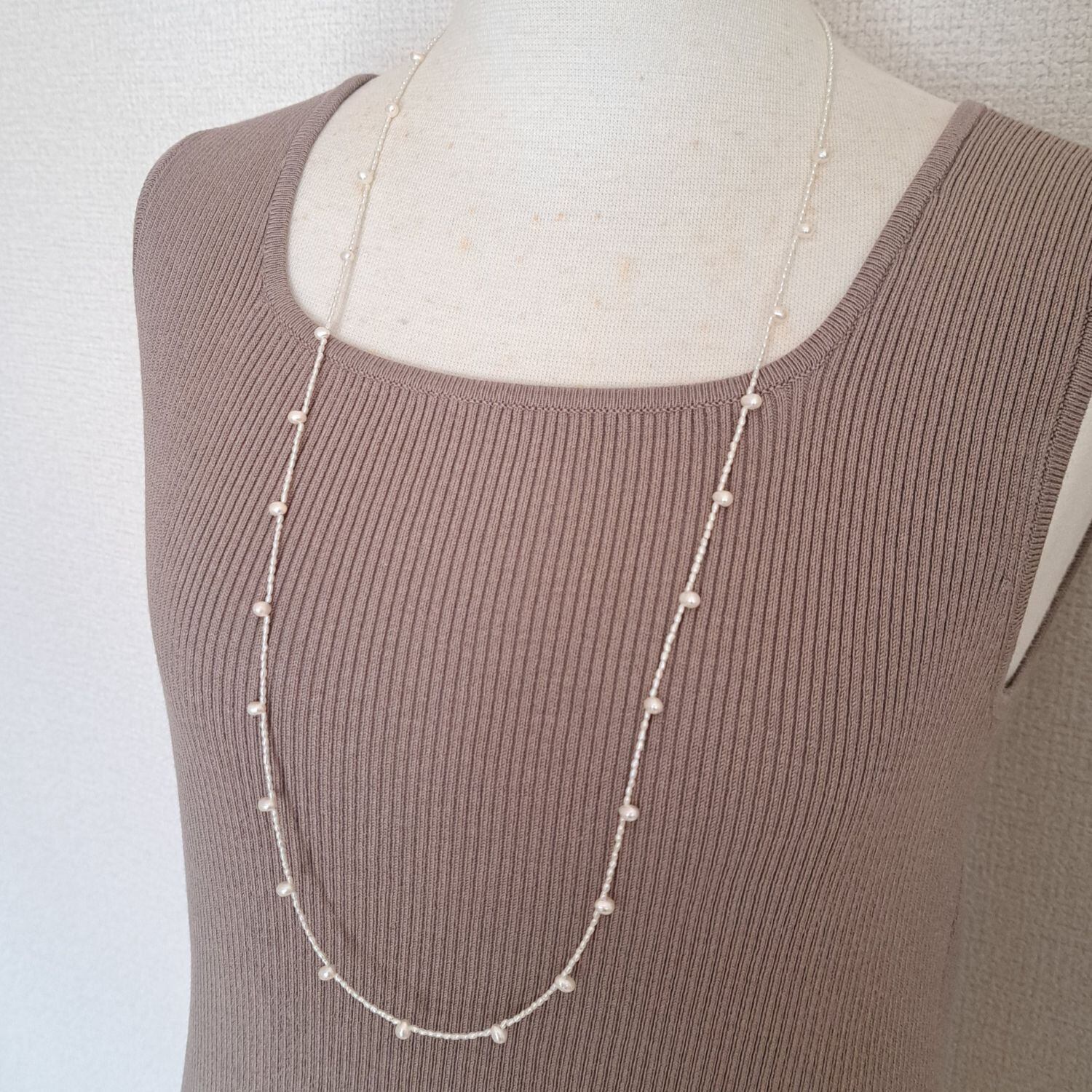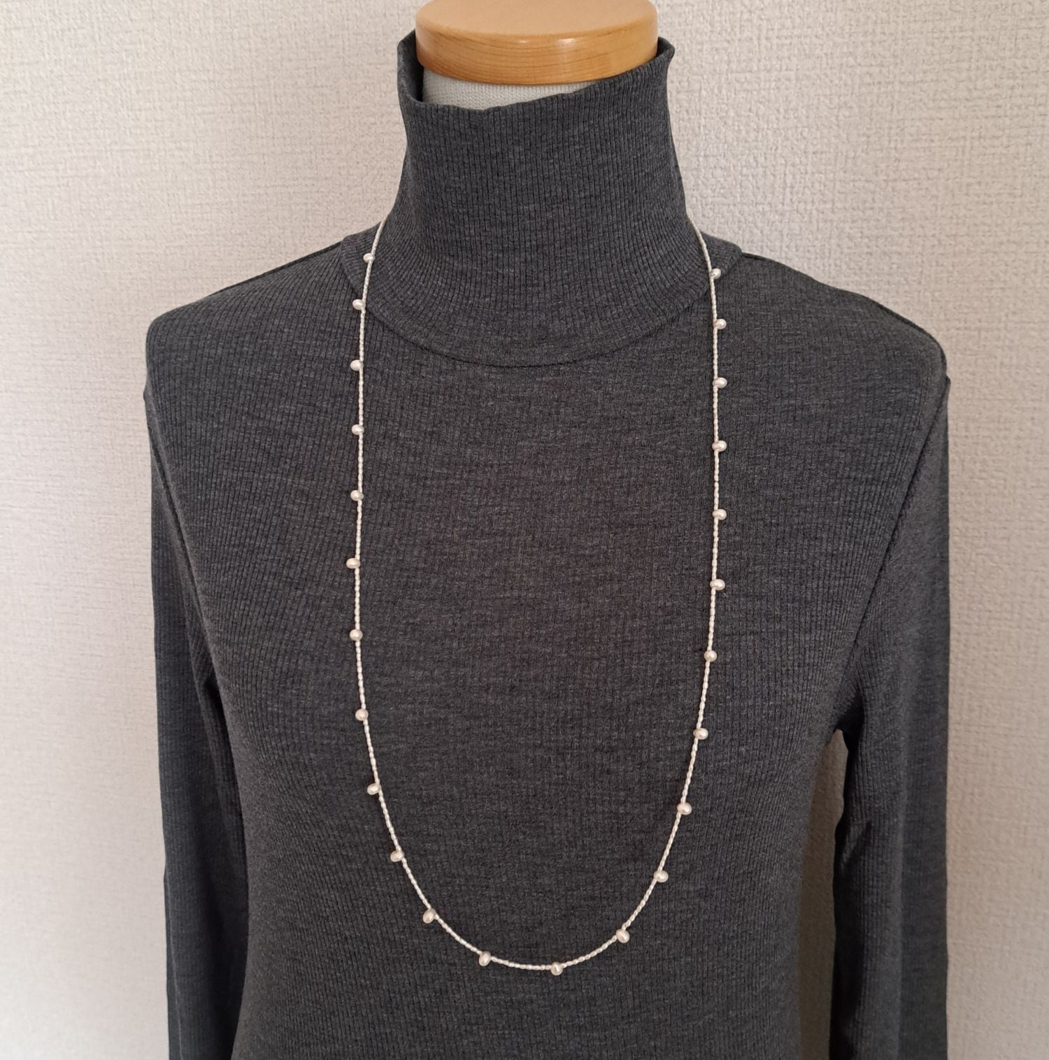 控えめなデザインながら、可憐で優しさを包み込んでくれる、小さな淡水パールのロングネックレス。日常使いにもぴったりなこのアイテムは、華美すぎず、どんなシーンにもさりげなく溶け込みます。まさに「脇役ジュエリー」として、あなたの魅力を引き立ててくれる存在です。