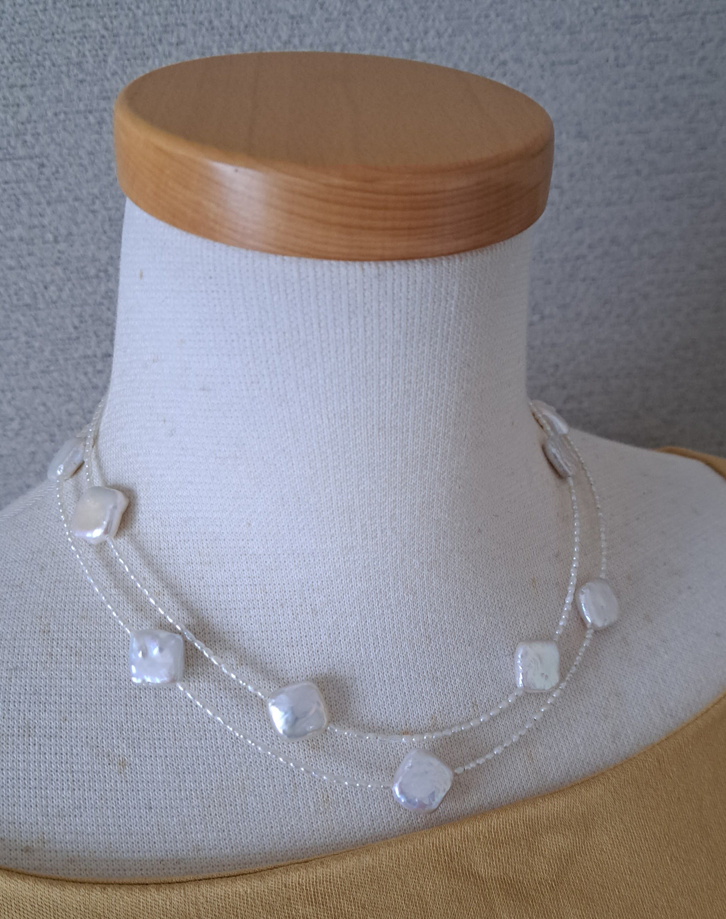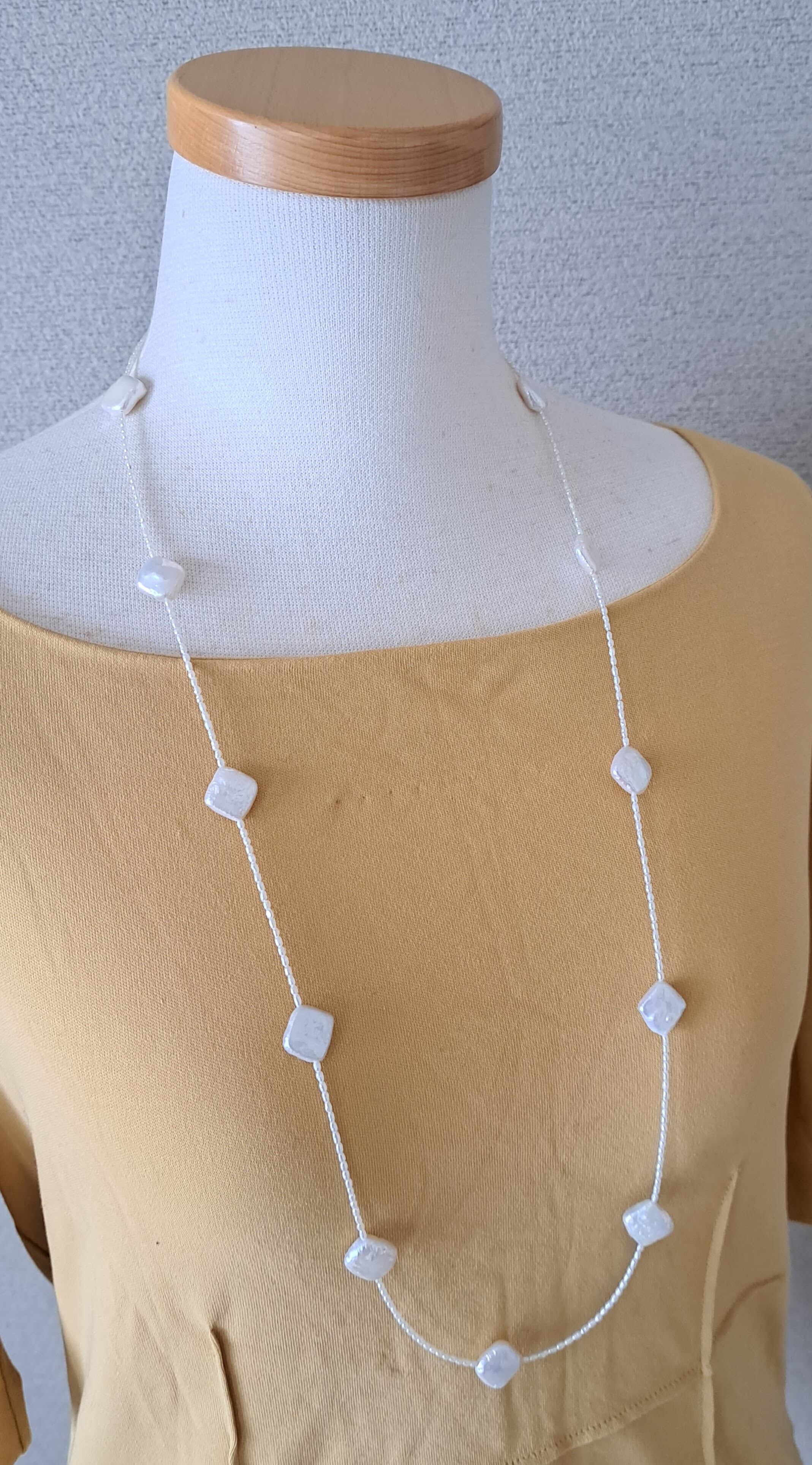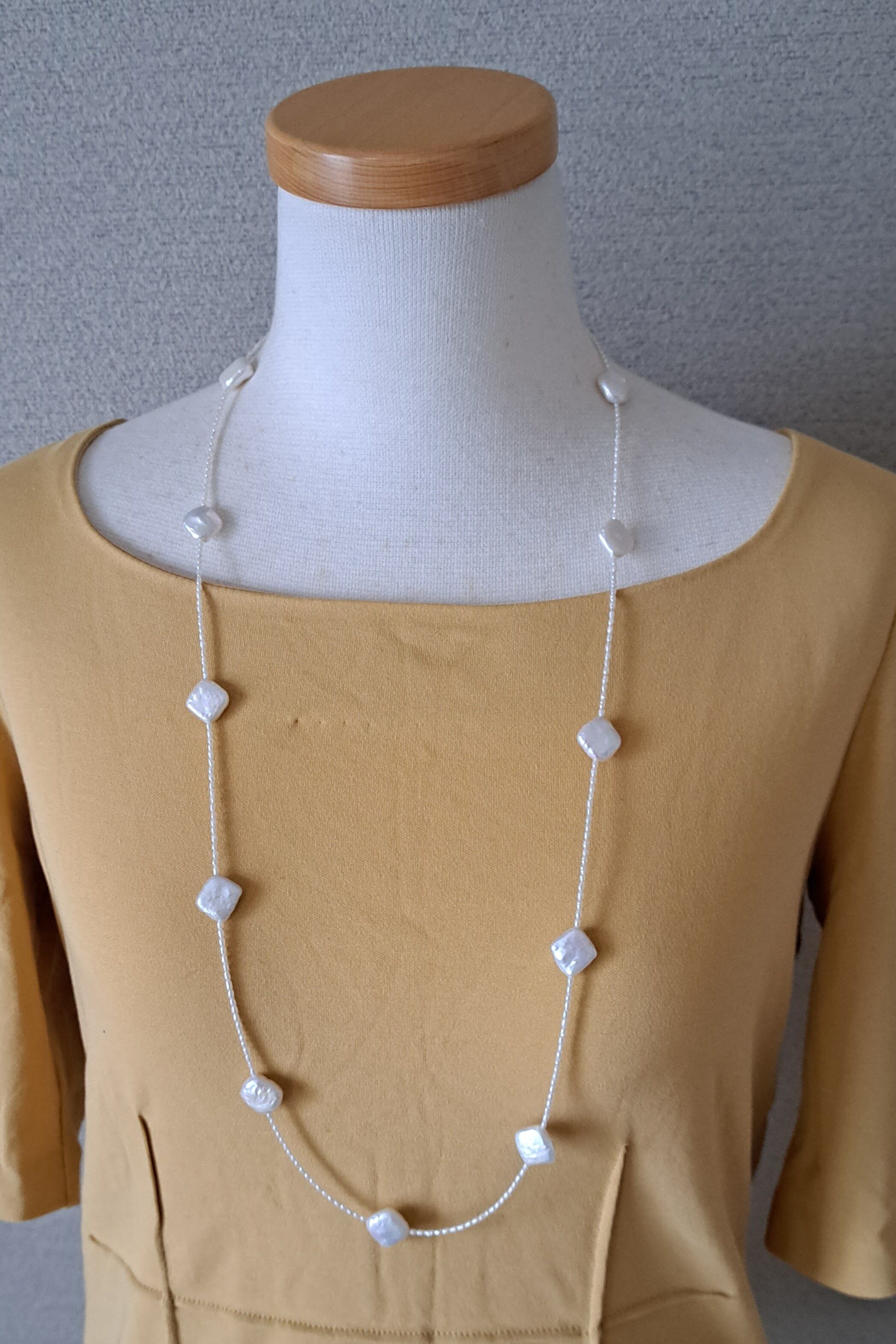 スクエアの淡水パールをカジュアルに、普段使いにも最適なロングネックレス!