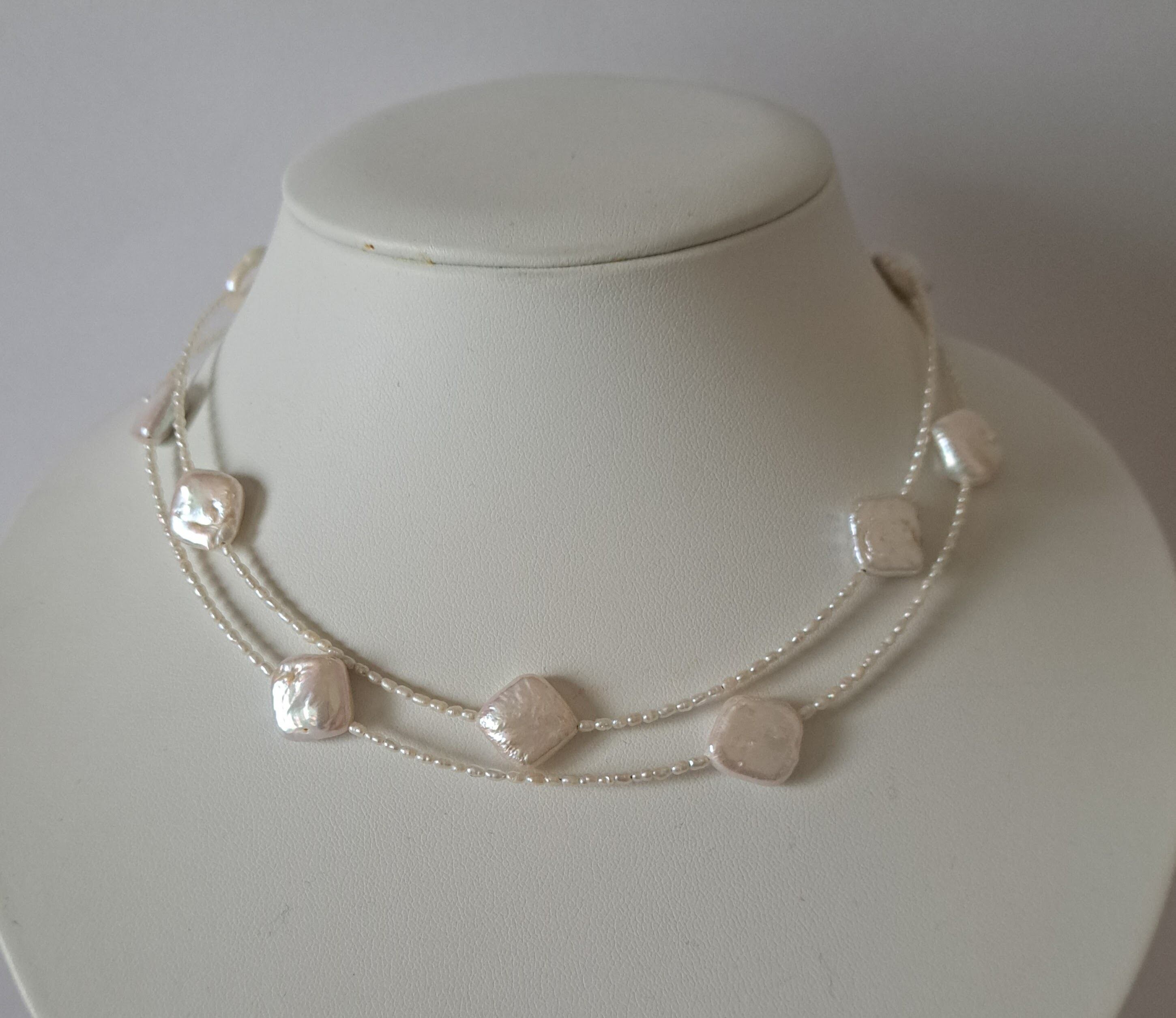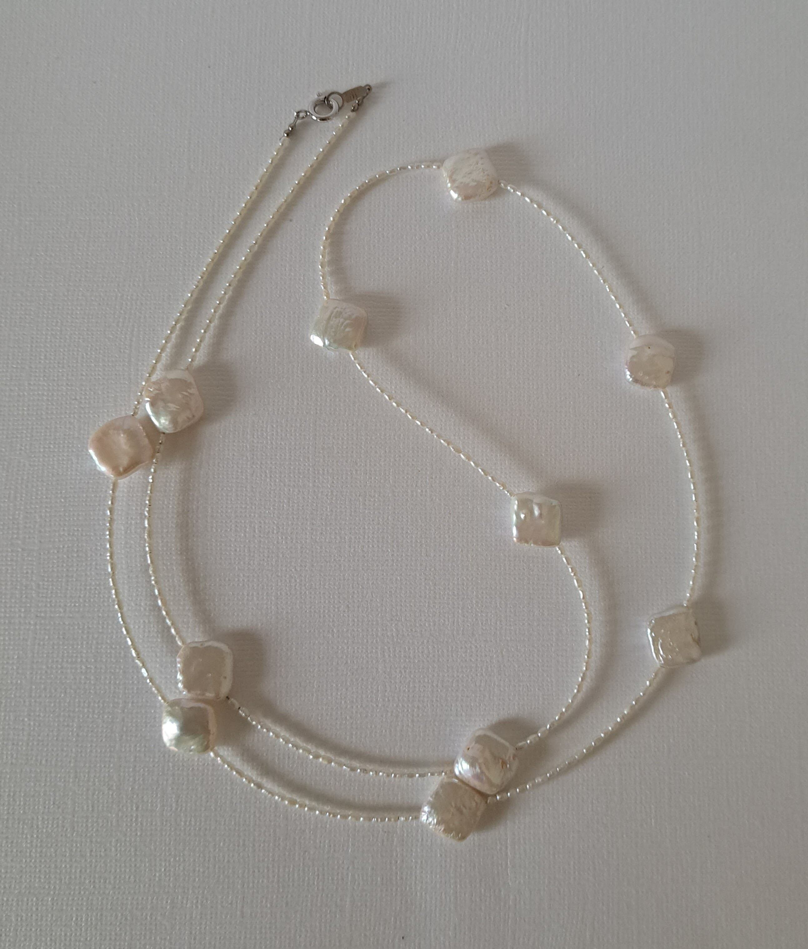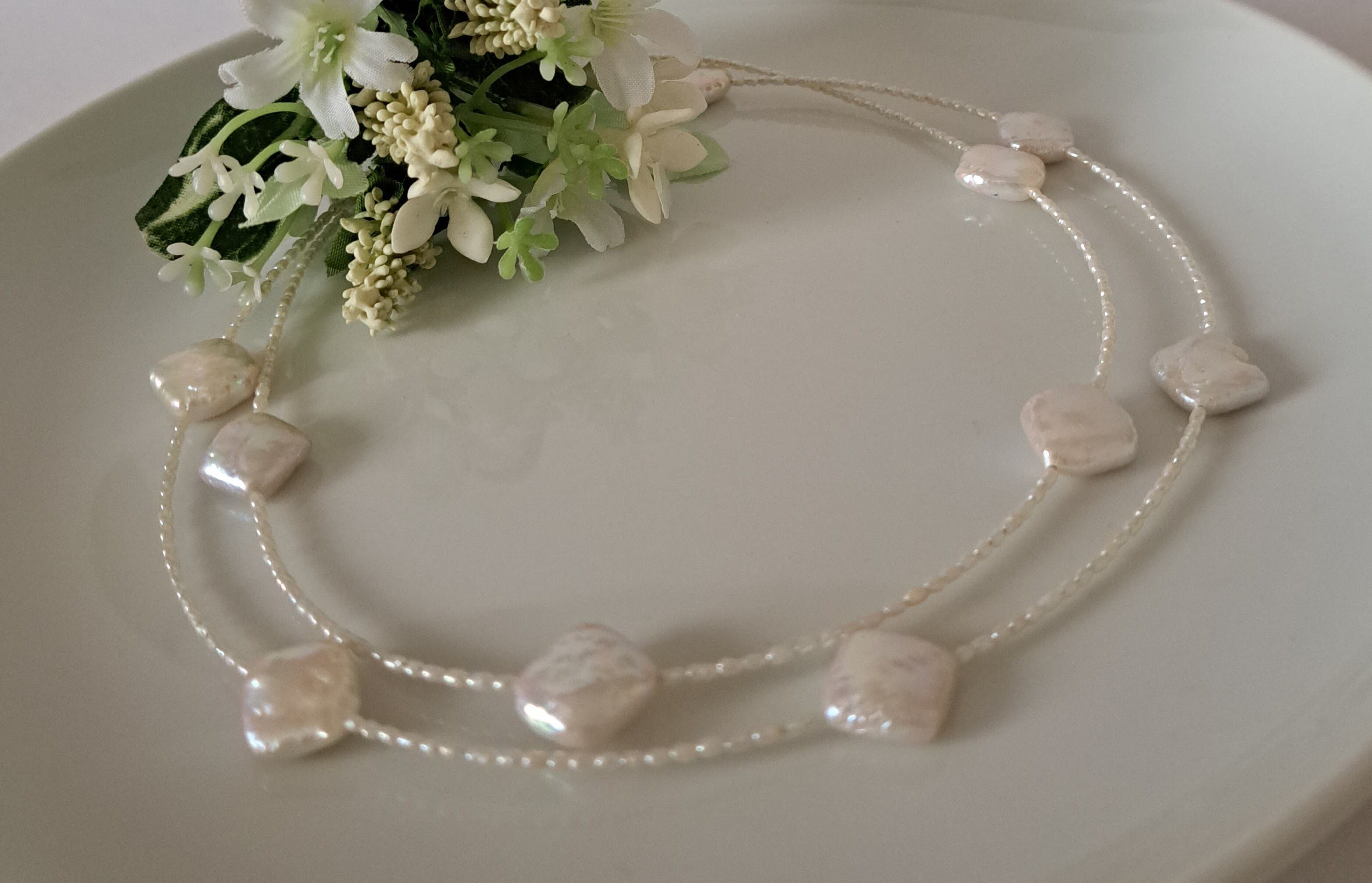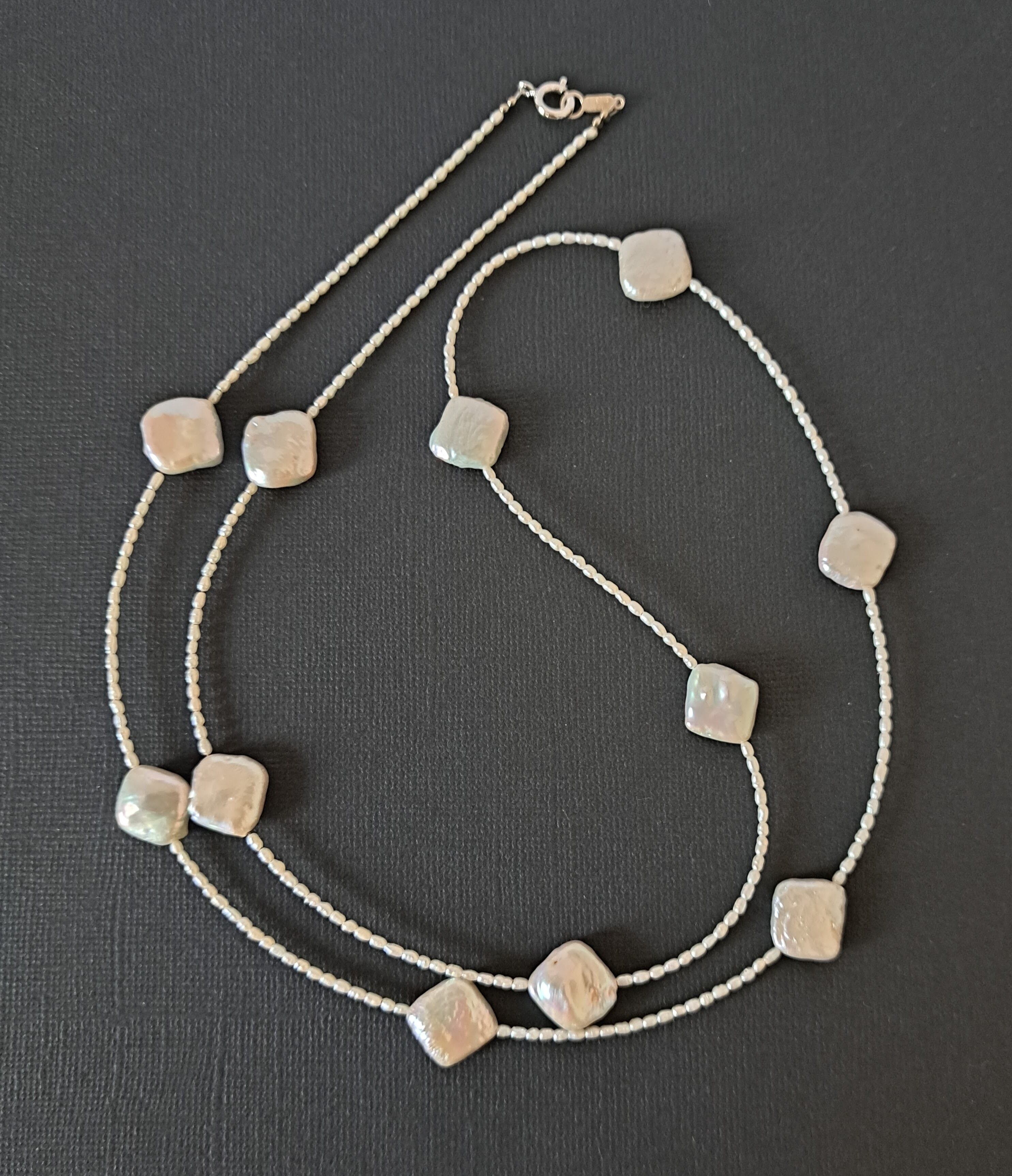 スクエアの淡水パールをカジュアルに、普段使いにも最適なロングネックレス!