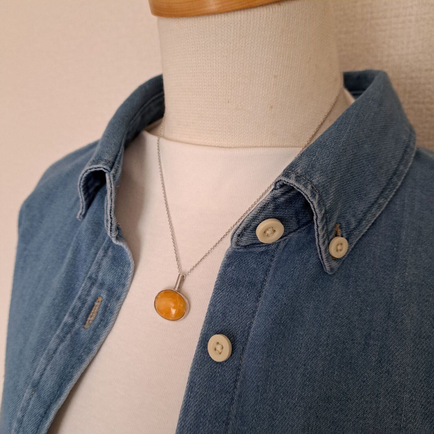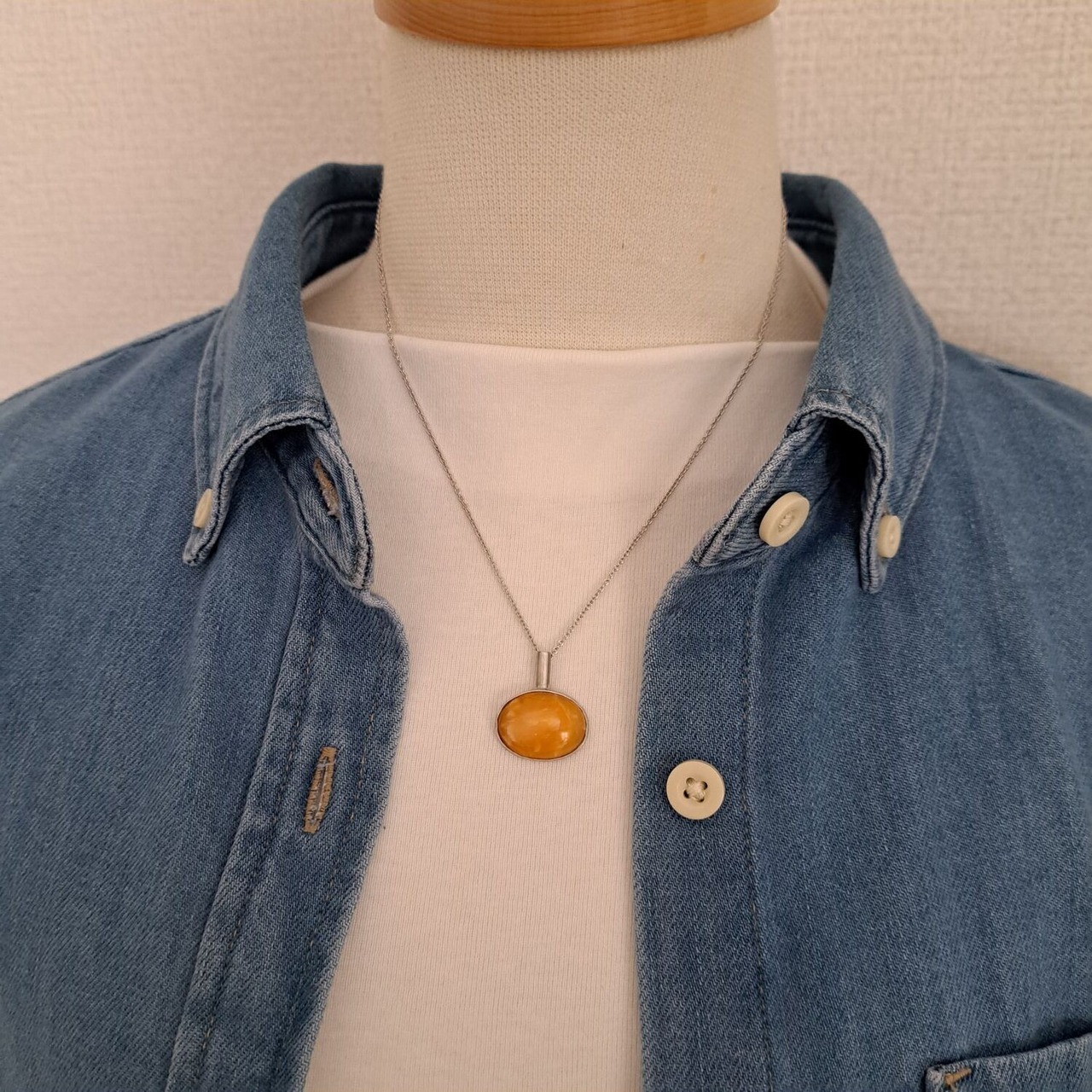 真っ直ぐに伸びたシルバーの強さと、華やかな太陽のように温かいイエローオパールが、まるであなたを包み込むようにデザインされたネックレス。輝く未来への一歩を、このネックレスと共に踏み出してみてください。