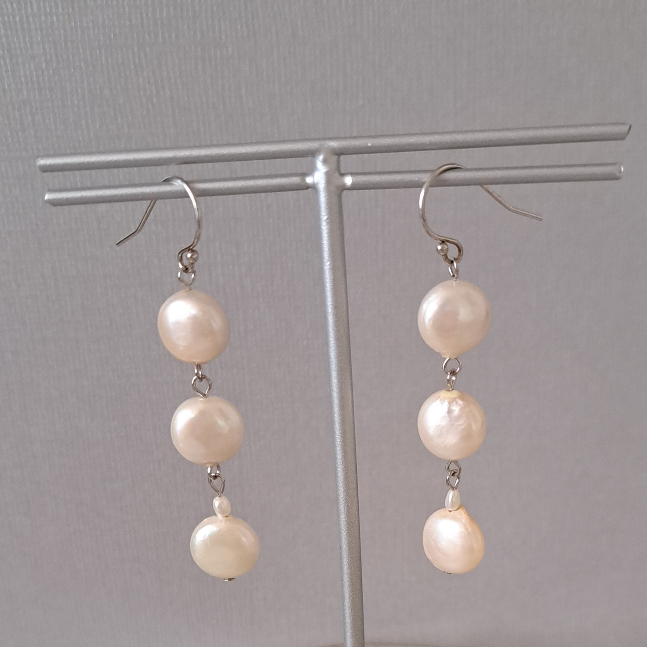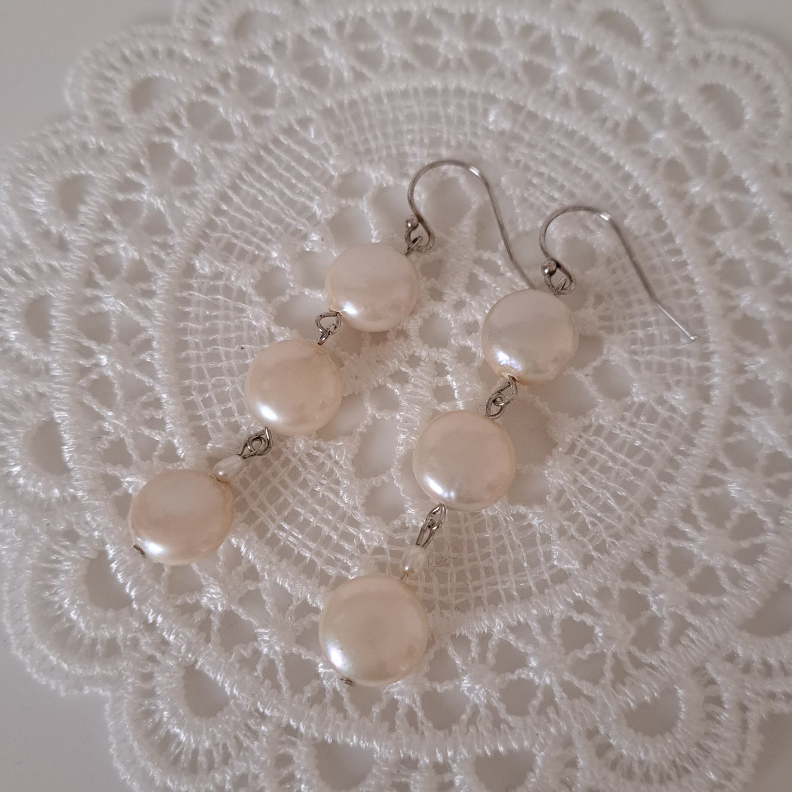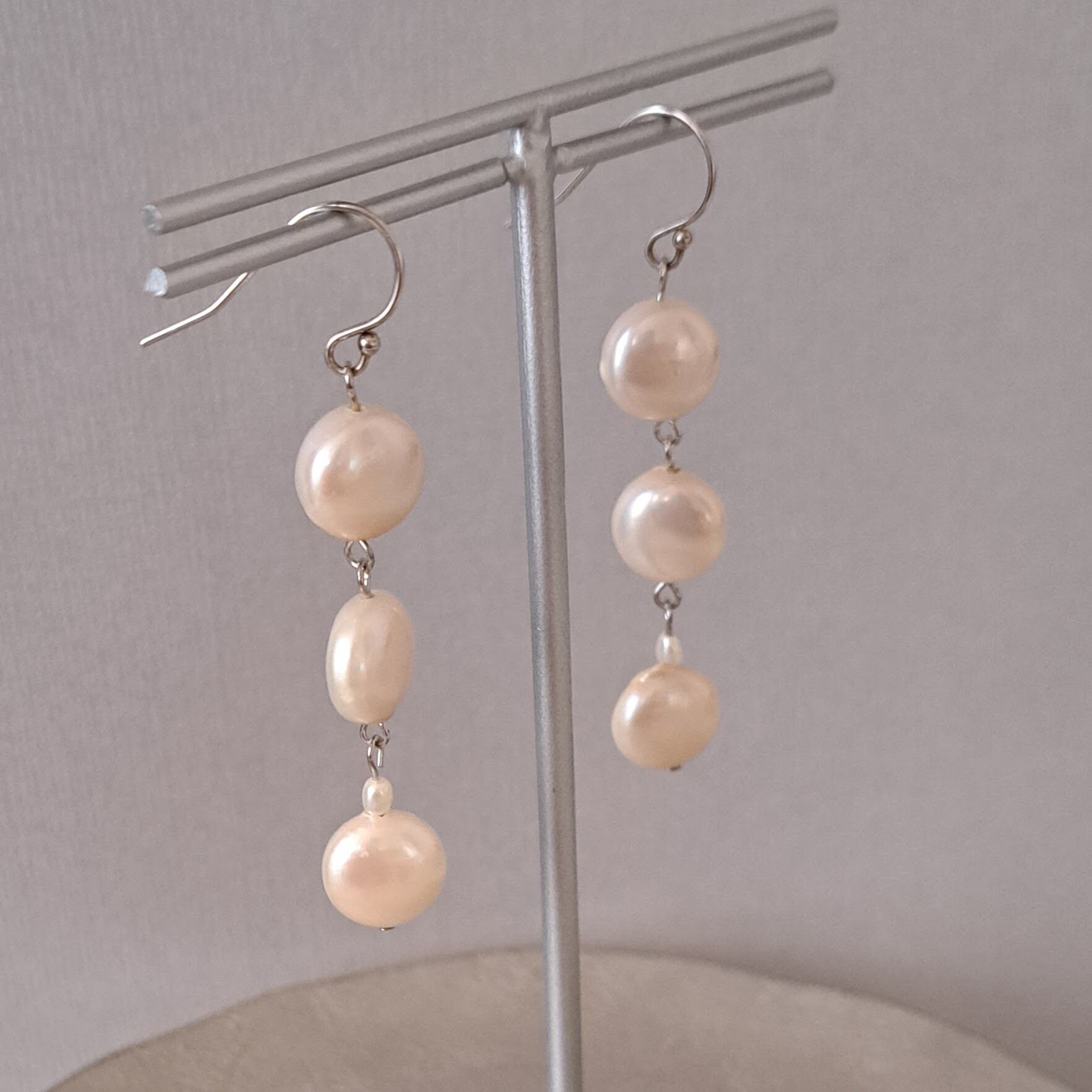 耳元で色んな方向に揺れ、3つ並んだデザインがボブヘアーでは存在感をアピールしたり、ロングの方には耳元でチラチラと見え隠れすることでエレガントにも素敵な印象になります。
