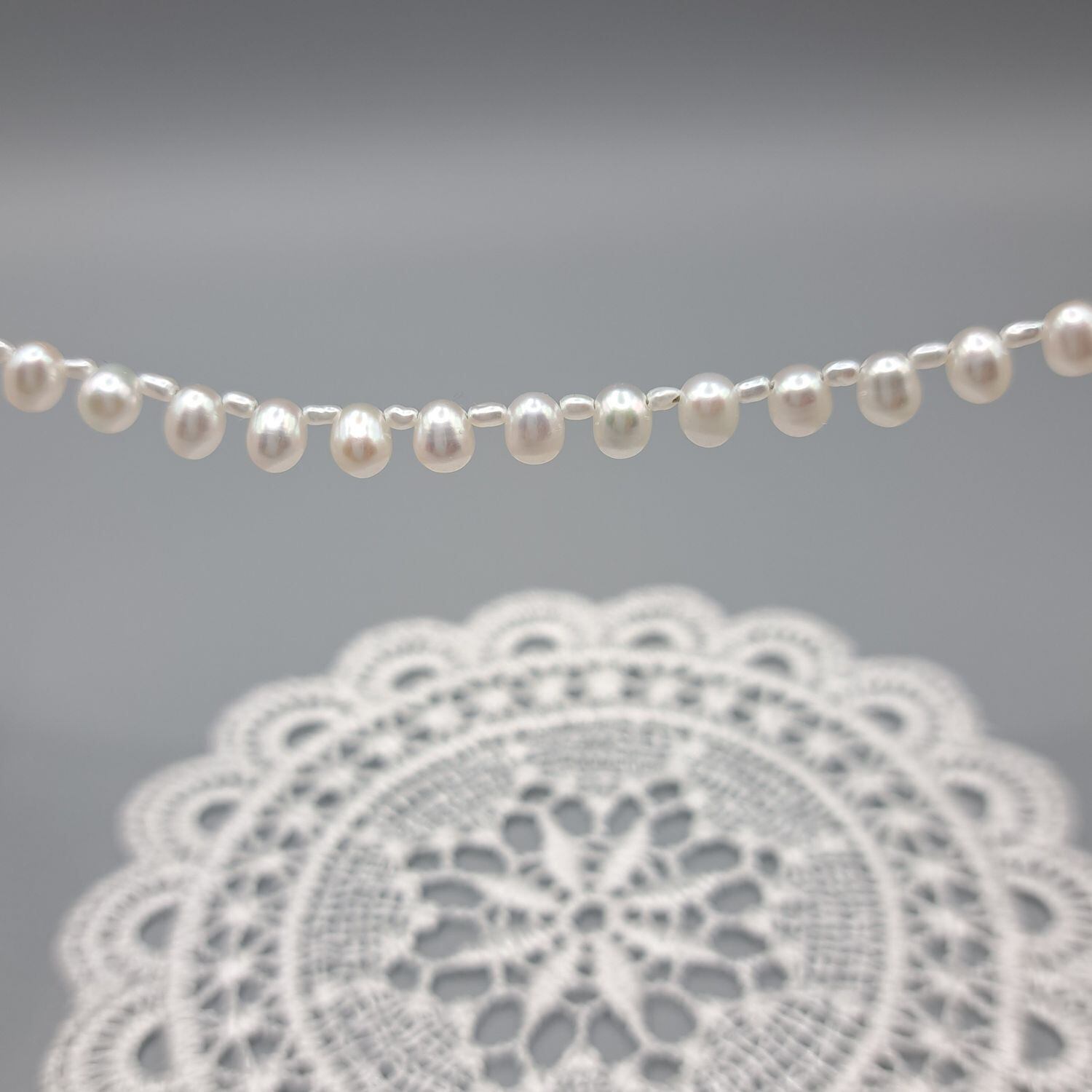 淡水パールは、ひとつひとつに微細な個性があり、表面に小さな「えくぼ」や「サークル(円形模様)」が見られることがあります。これらの特徴は、天然のパールならではの魅力であり、パールの美しさを一層引き立てています。