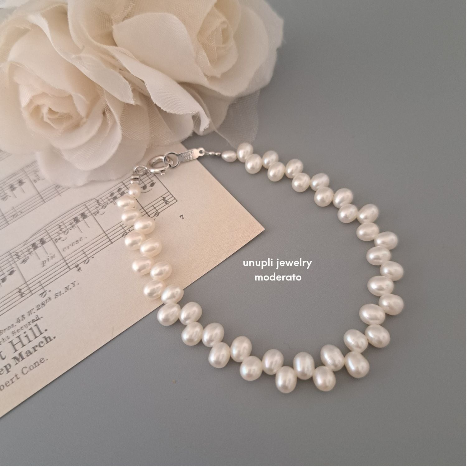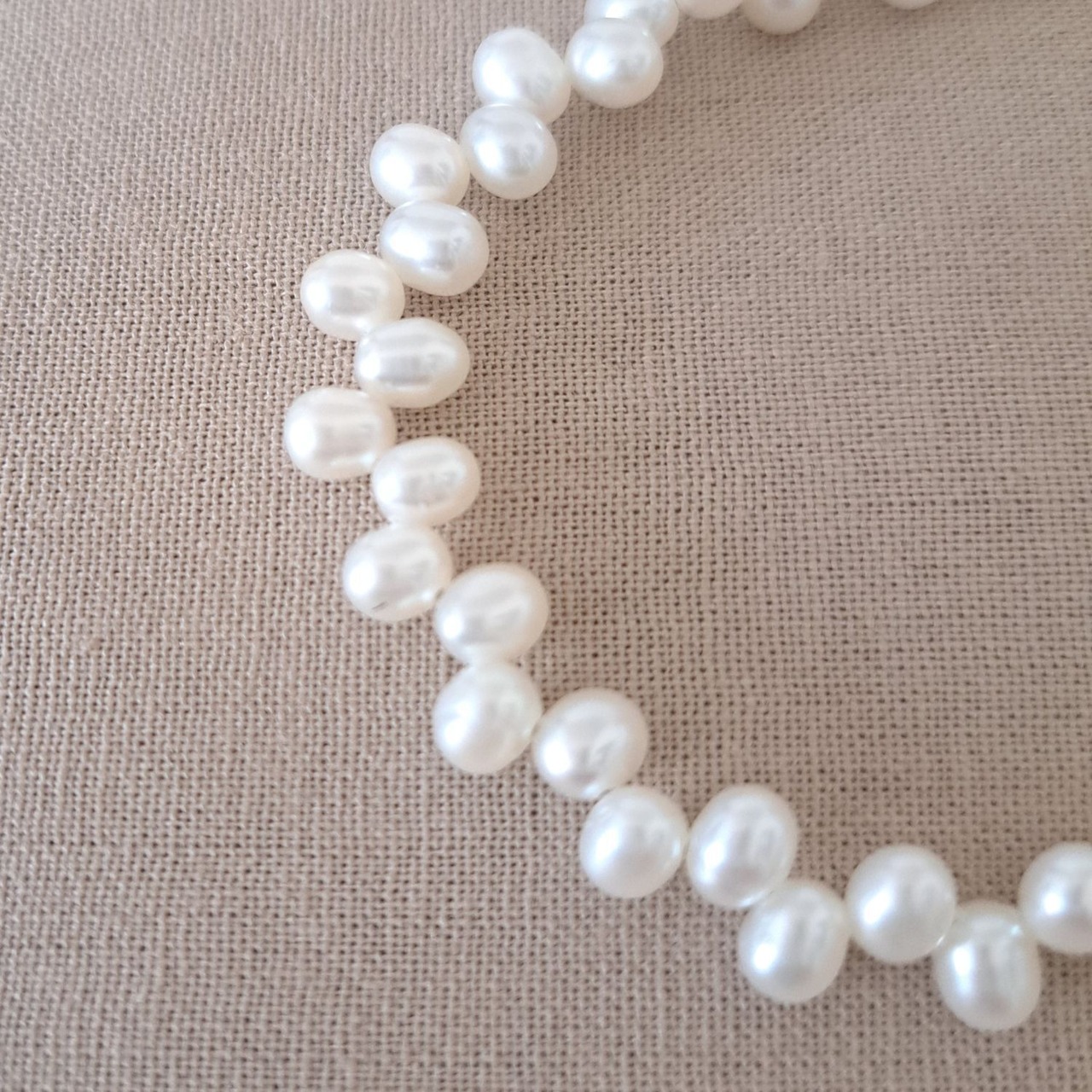 また、淡水パールは他のパールに比べて比較的汗に強く、冠婚葬祭で使われるアコヤパールとは異なり、個性的な形が多いのも特徴です。自然な形状が魅力的で、日常使いにもぴったりなジュエリーとなります。