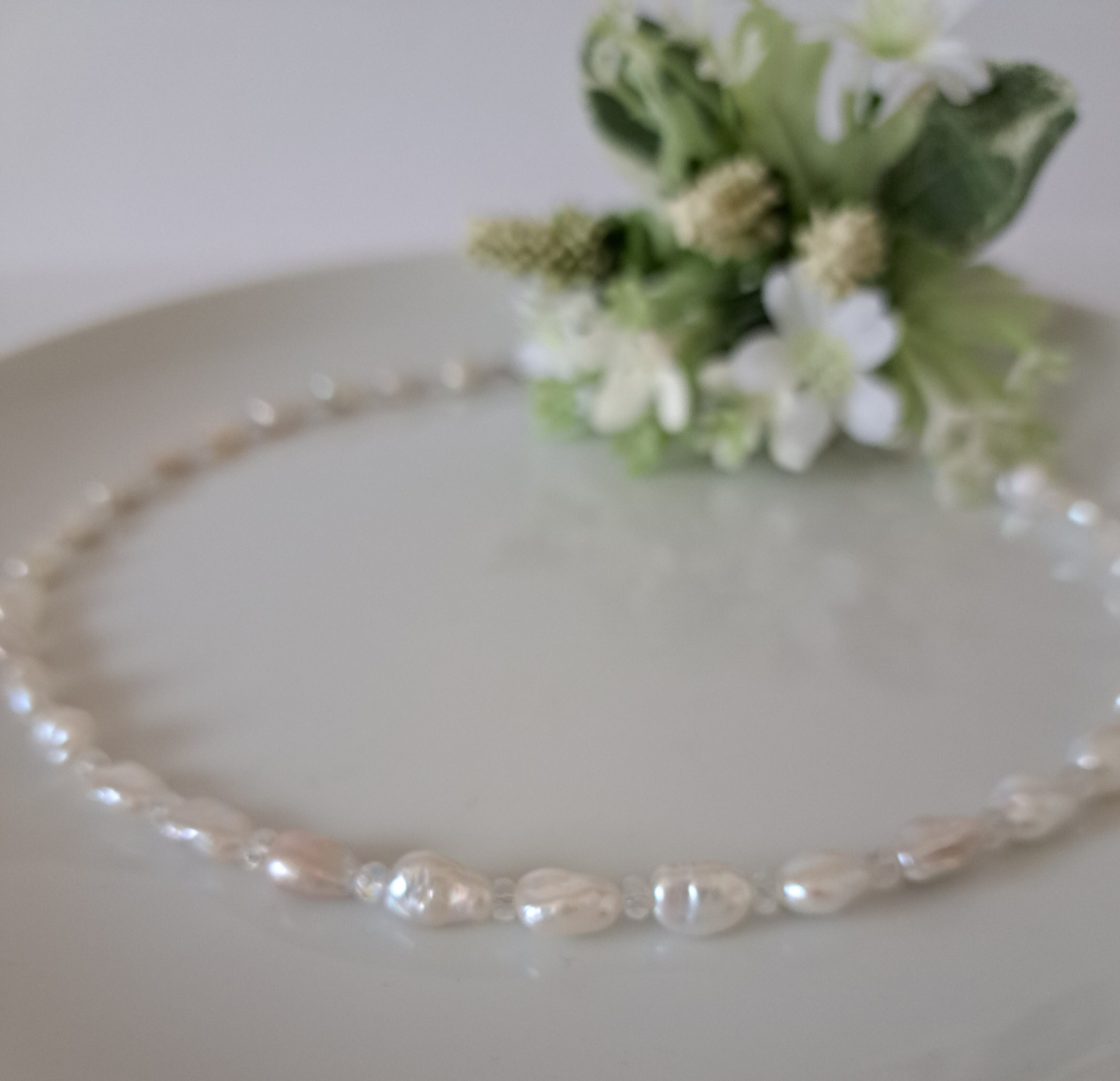 淡水パールはパールの中でも比較的汗に強く、冠婚葬祭で使われるアコヤパールと違い個性的は形が多いのも特徴です。