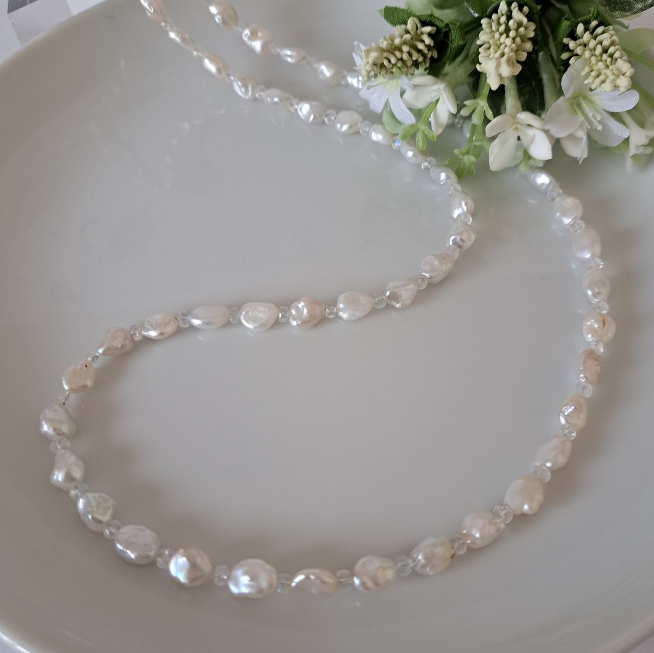 歪な形でも照りが綺麗で艶のある淡水パールを主張しすぎず