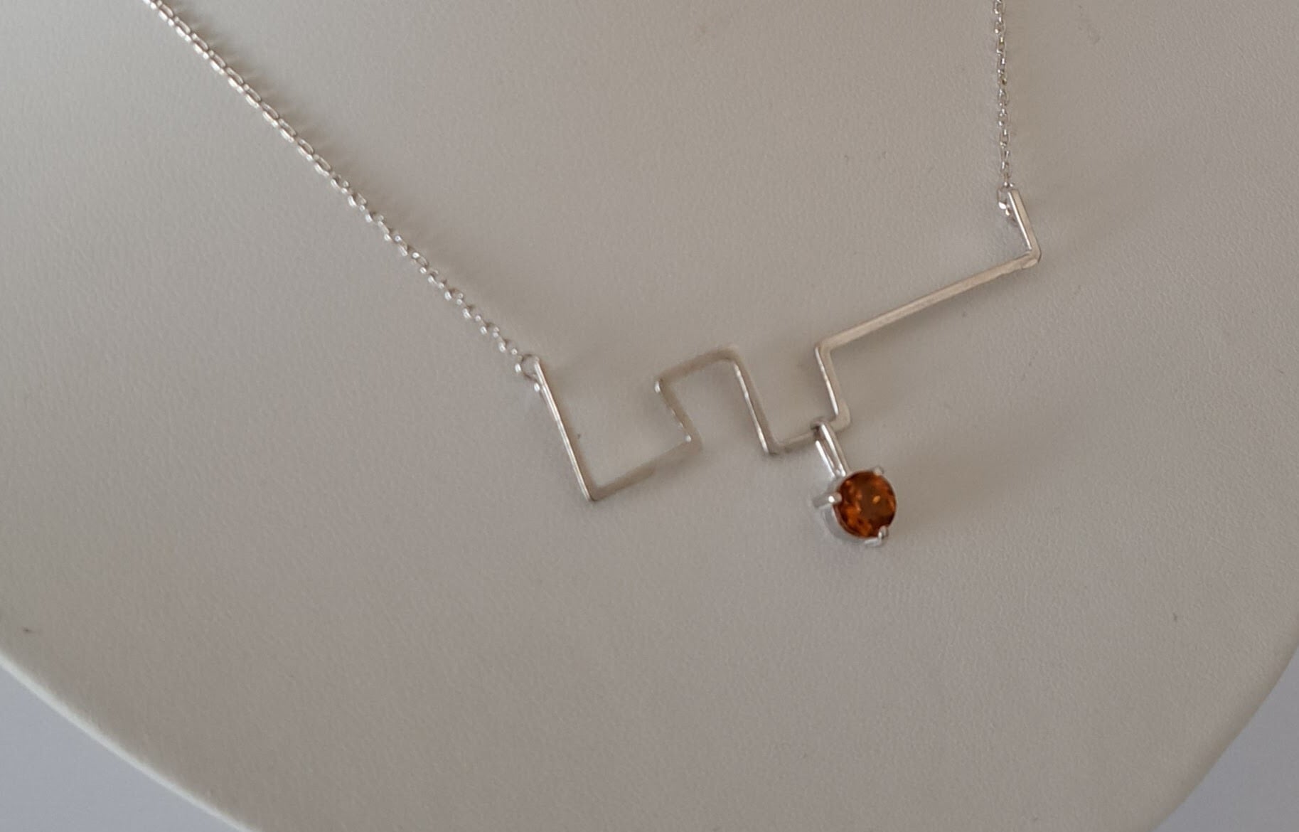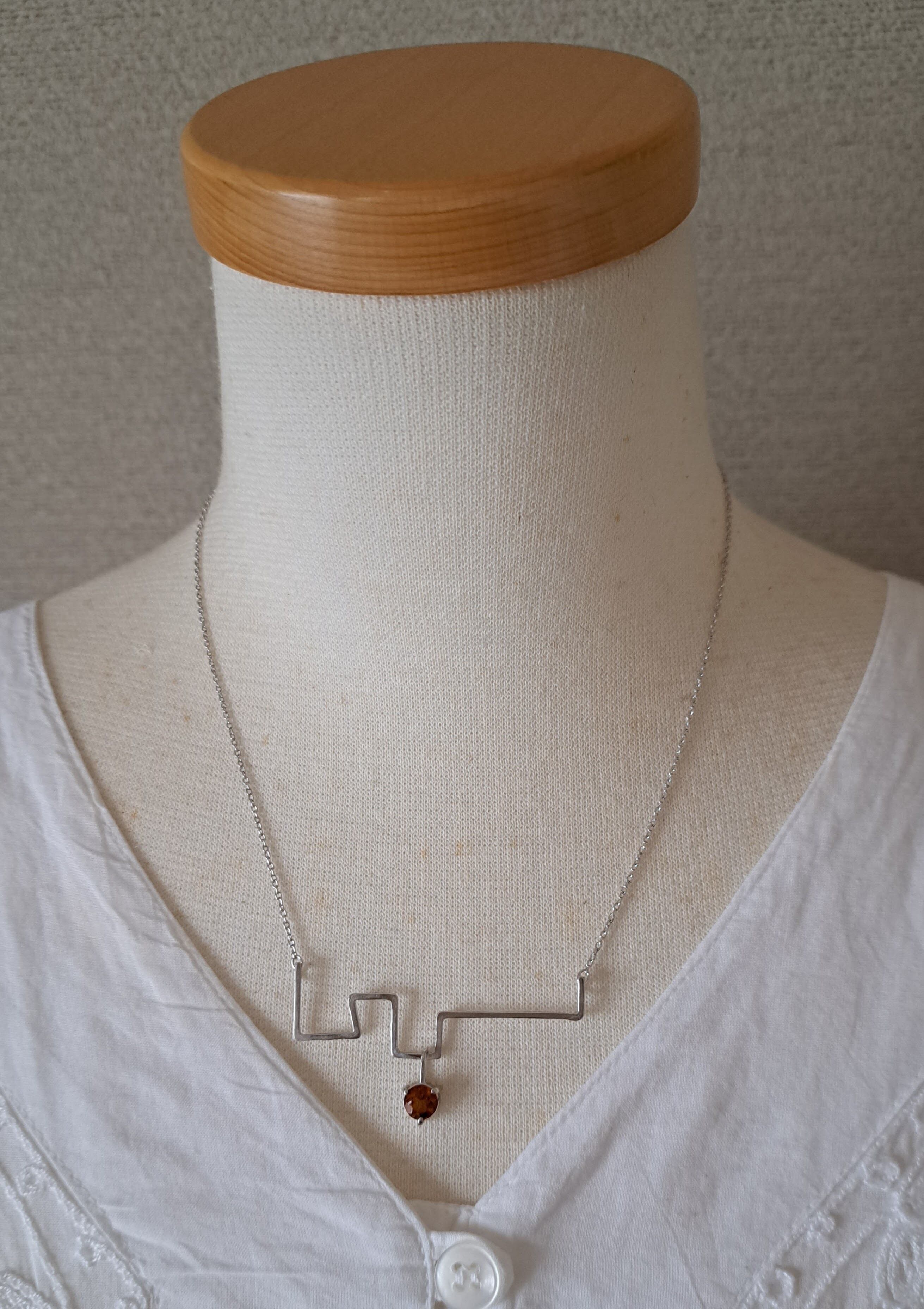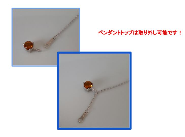 黒みがかったオレンジ色のシトリントパーズのペンダントトップは気分によってぶら下がり部分に通して組み合わせたり様々なシーンで活躍するジュエリーです。