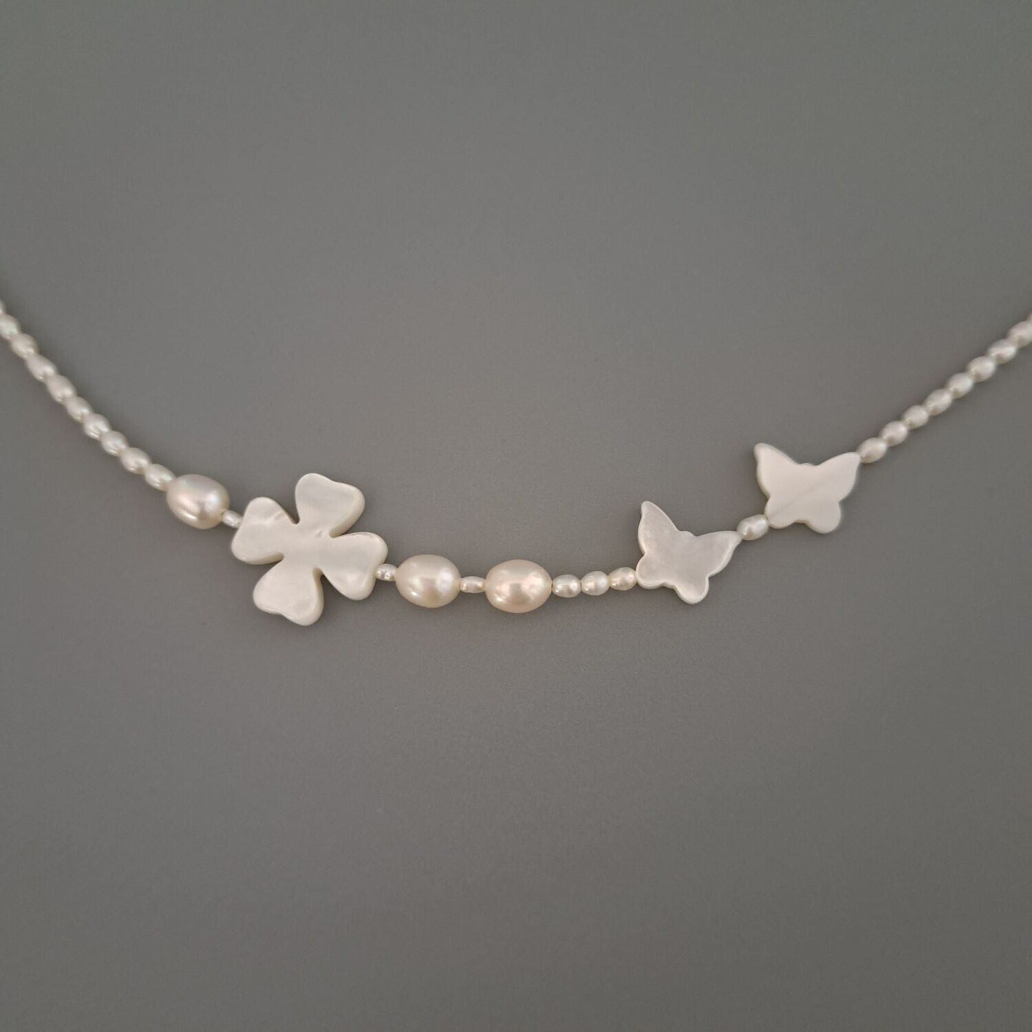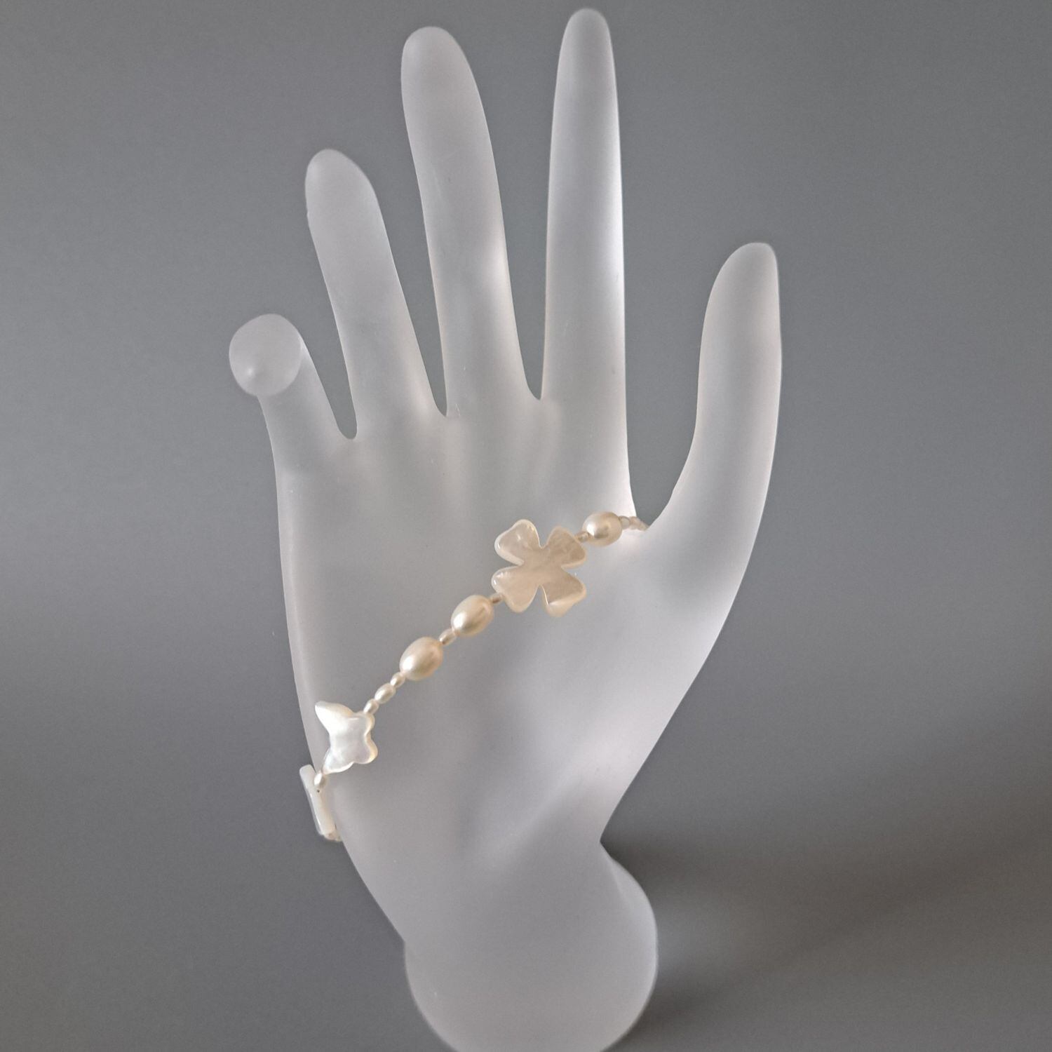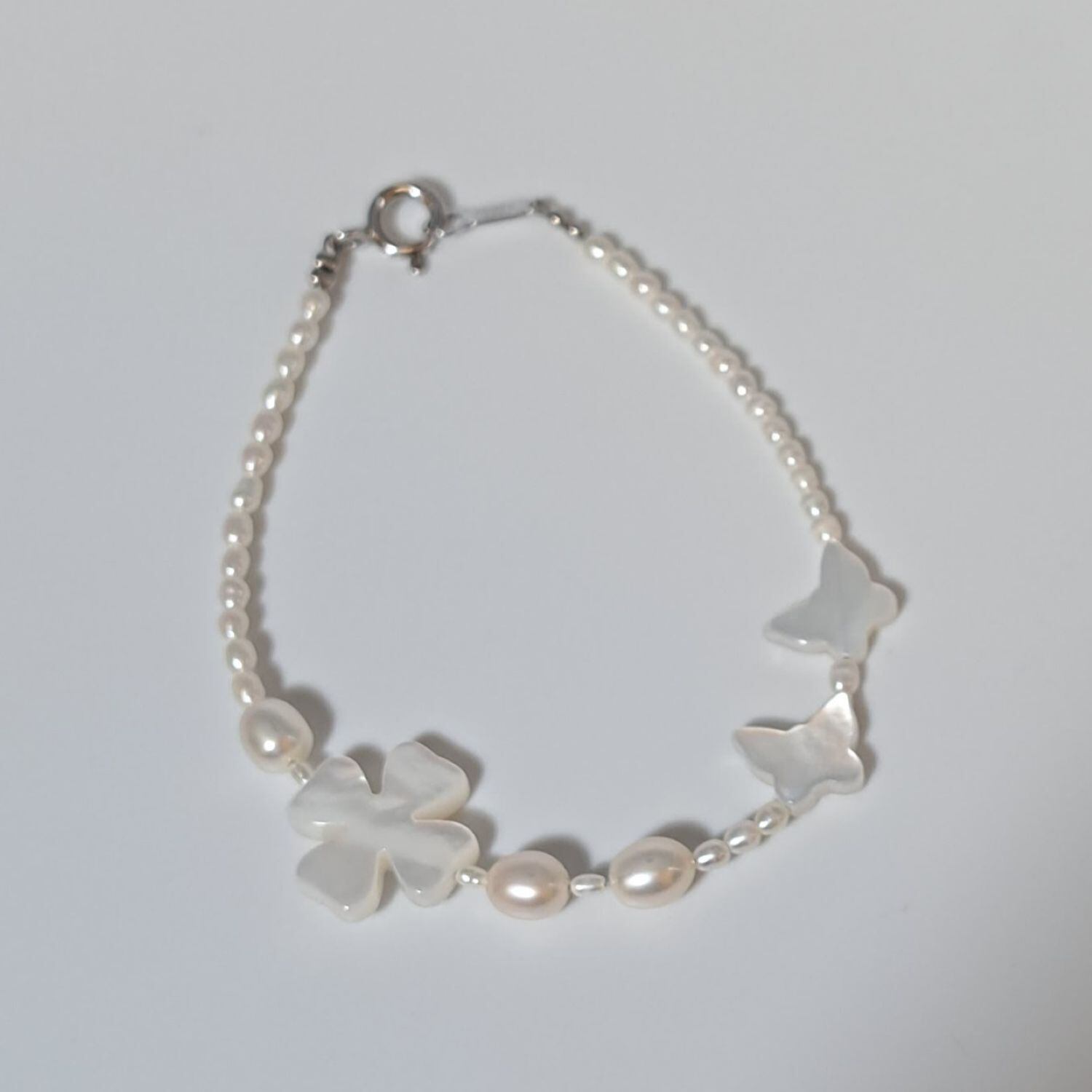 【Butterfly・Clover】蝶々・クローバー型シェル×淡水パールブレスレット MBL708