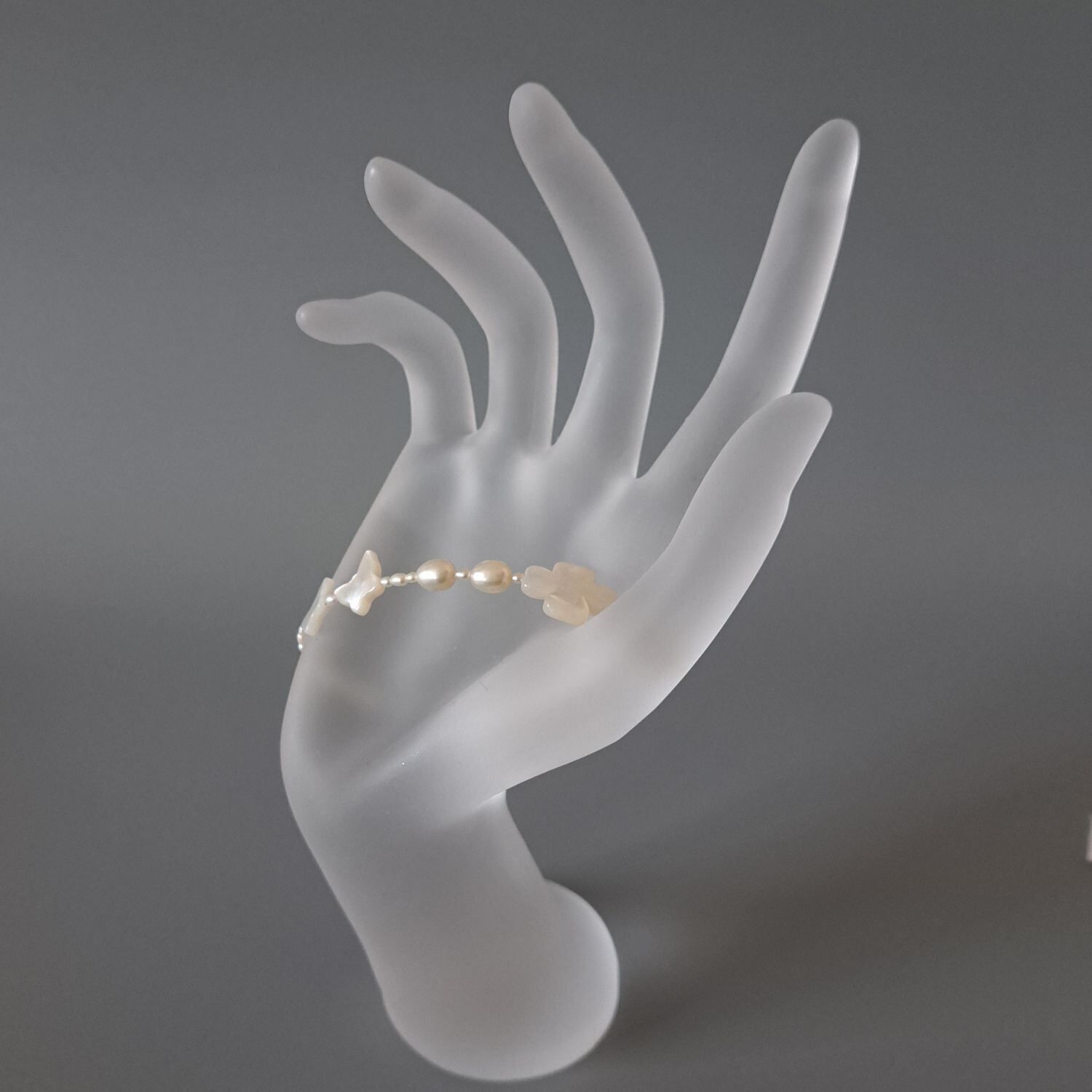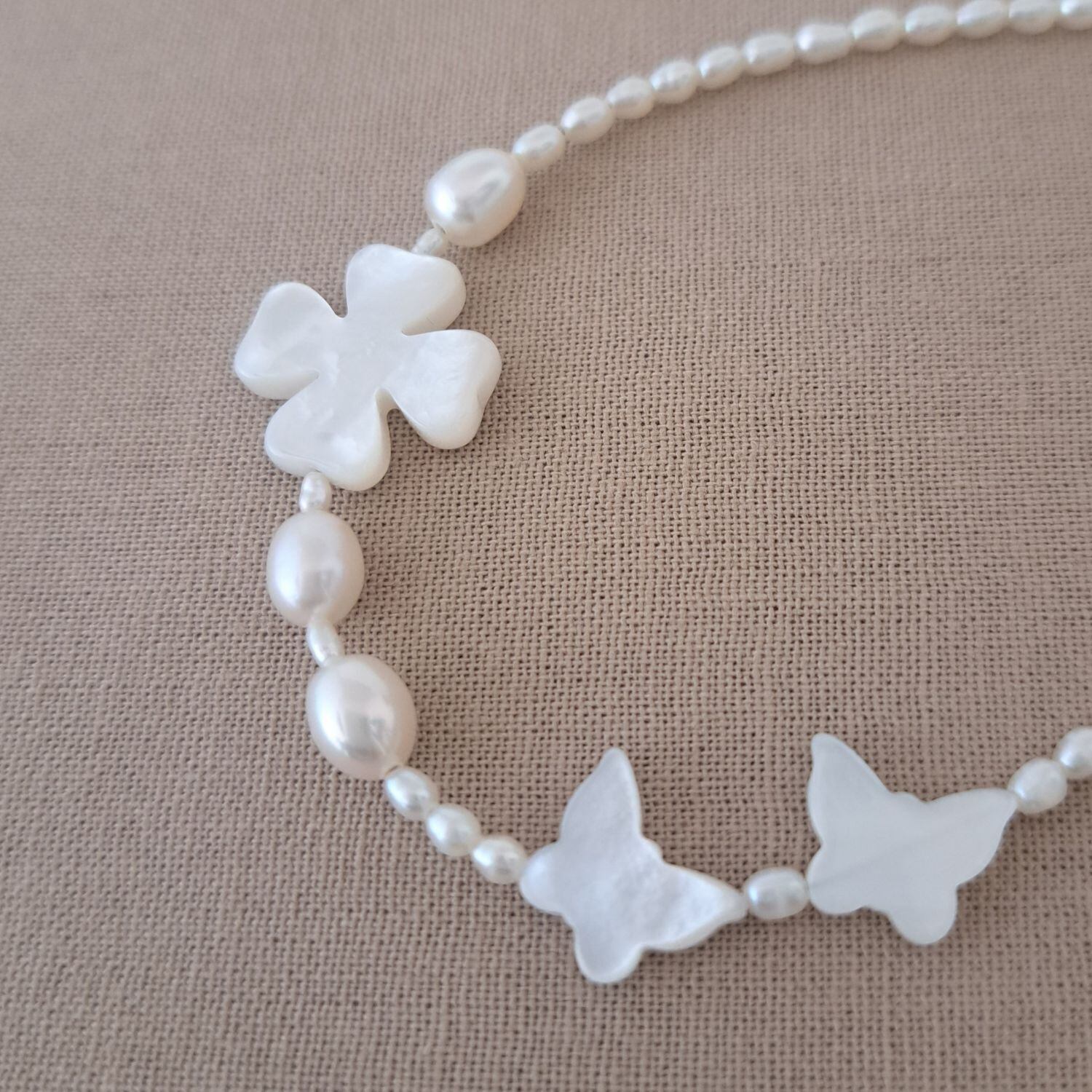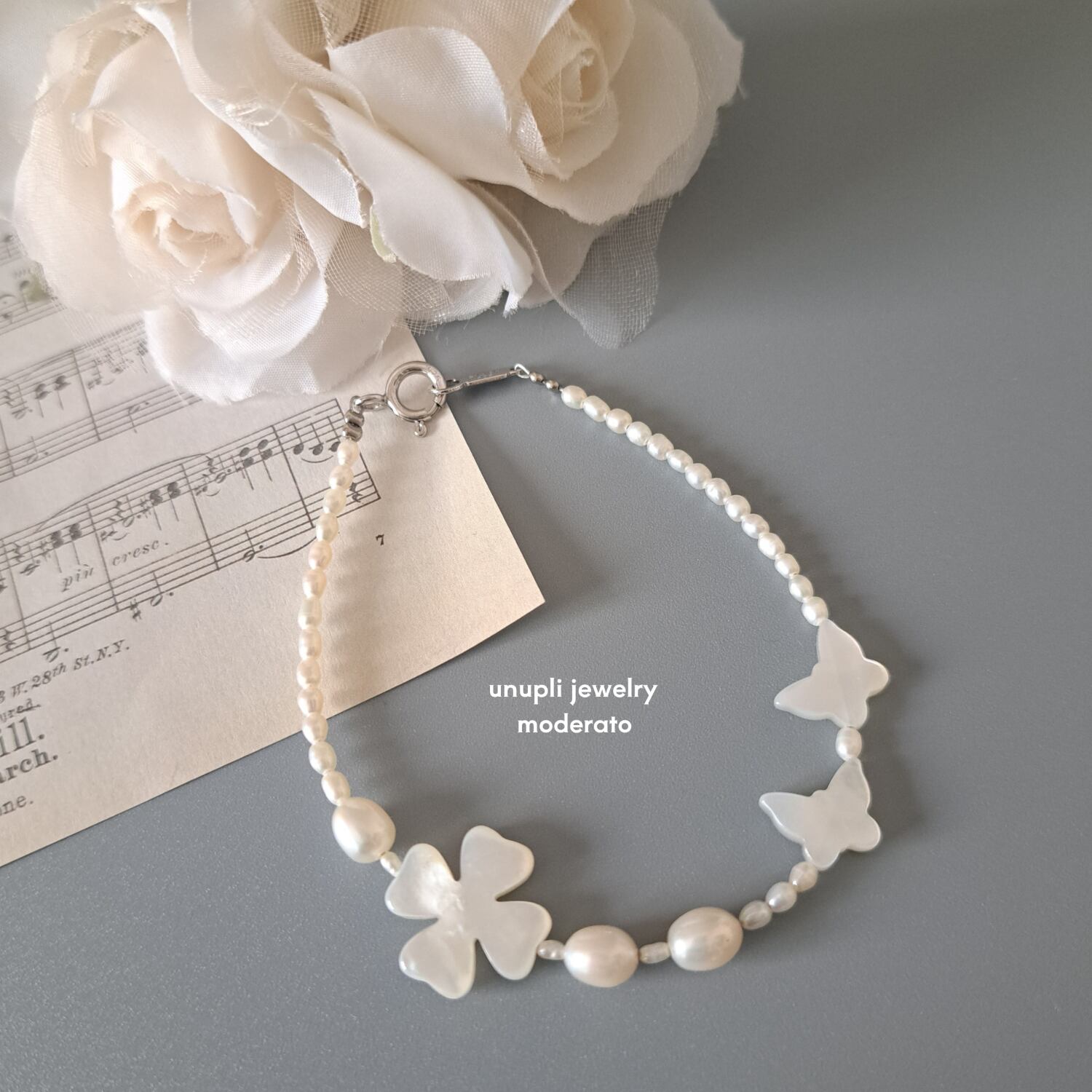 【Butterfly・Clover】蝶々・クローバー型シェル×淡水パールブレスレット MBL708