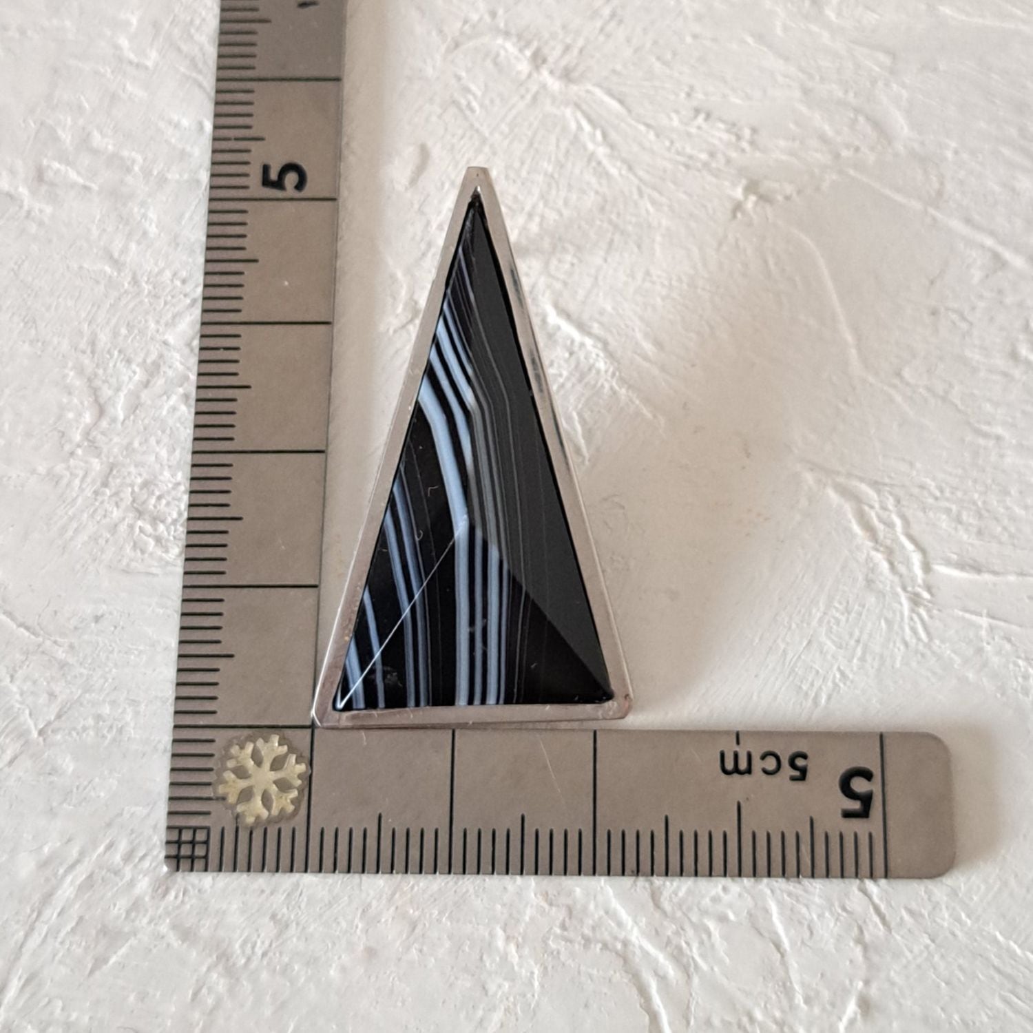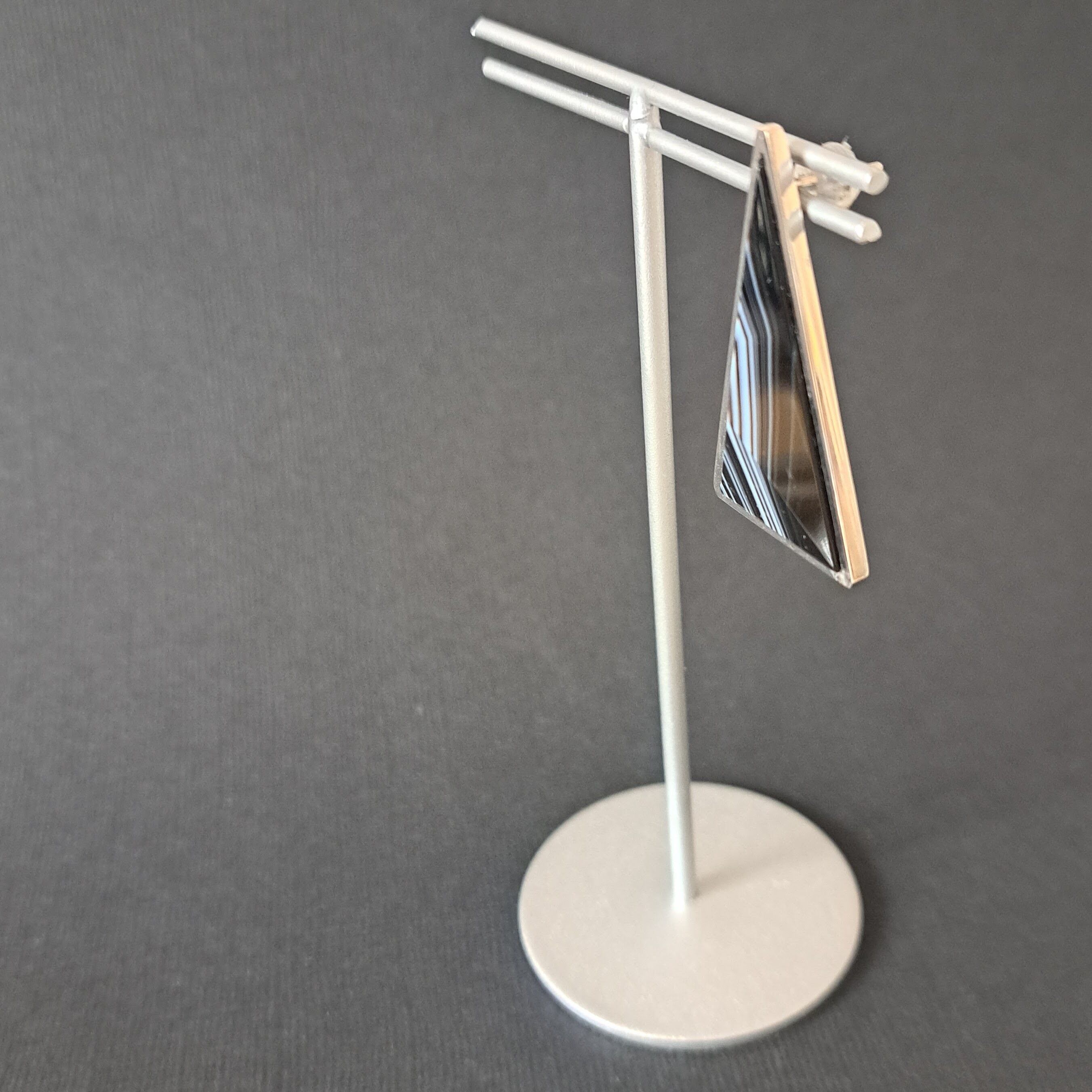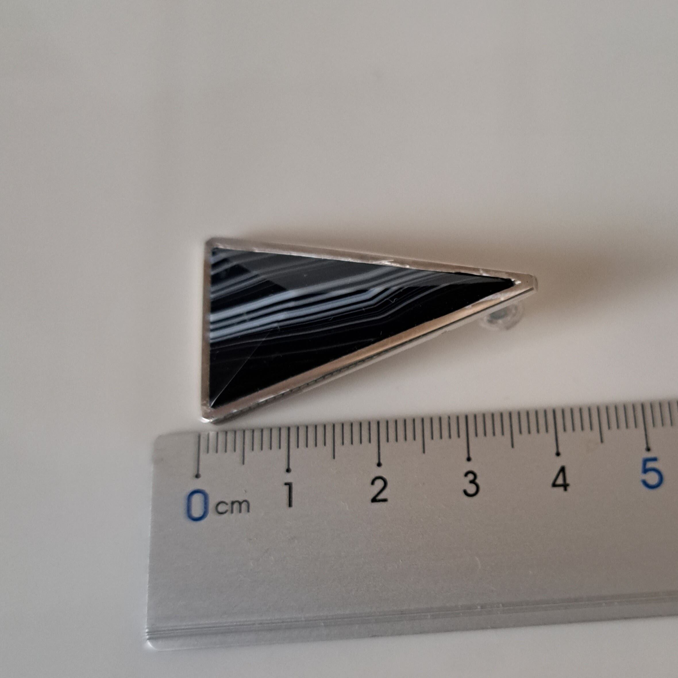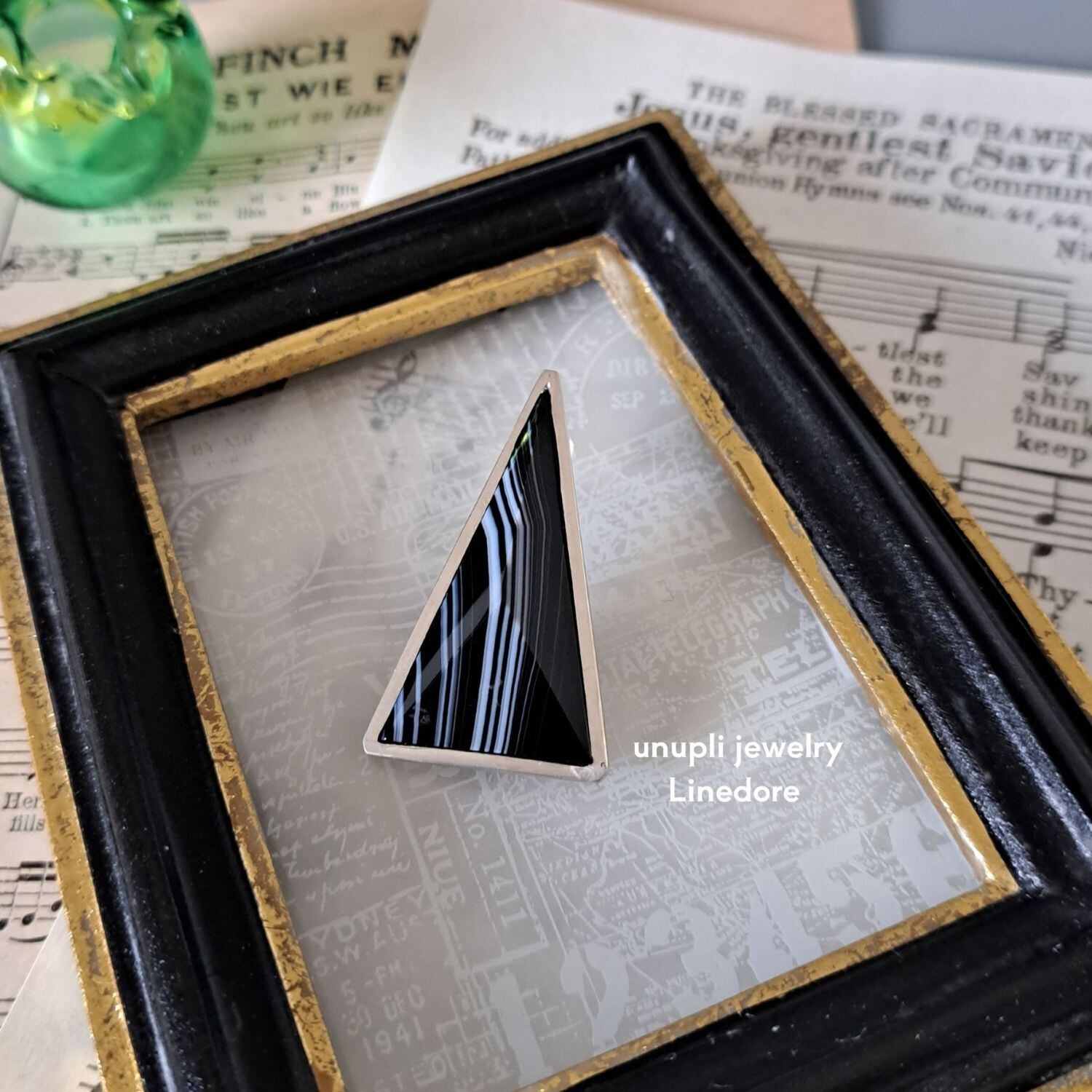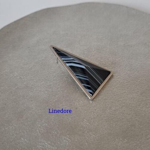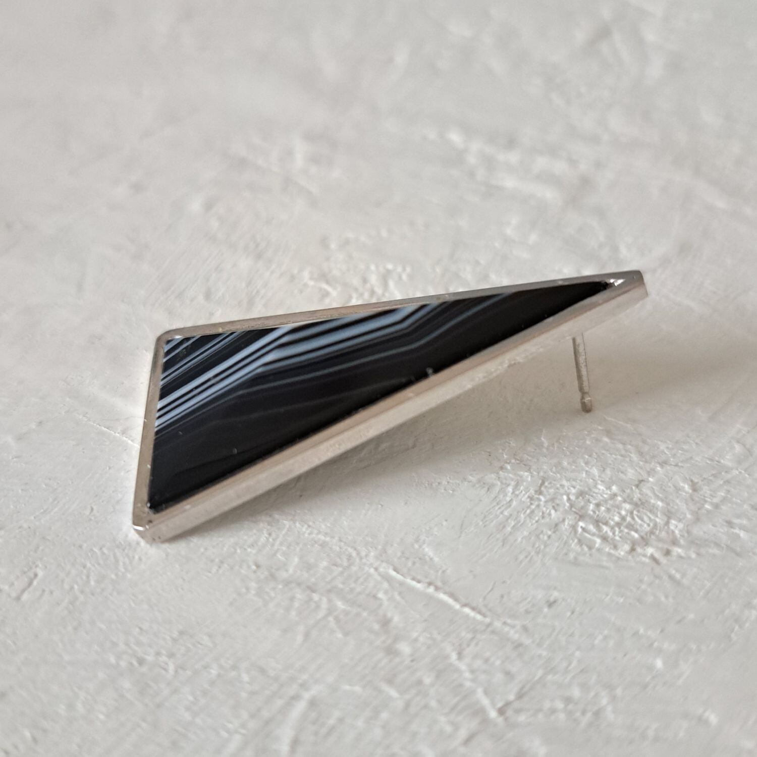トライアングルの形をしたシックな天然石「シマオニキス」を使用した、大振りの片耳用ピアスが耳元で存在感を放つ一点もののジュエリーです。この神秘的な形状は、過去と未来、現実と夢の境界を曖昧にし、想像力をかき立てます。トライアングルの無限の解釈が、存在感とともに永遠に続いていく様子を彷彿とさせる、ユニセックスでお使いいただけるピアスです。