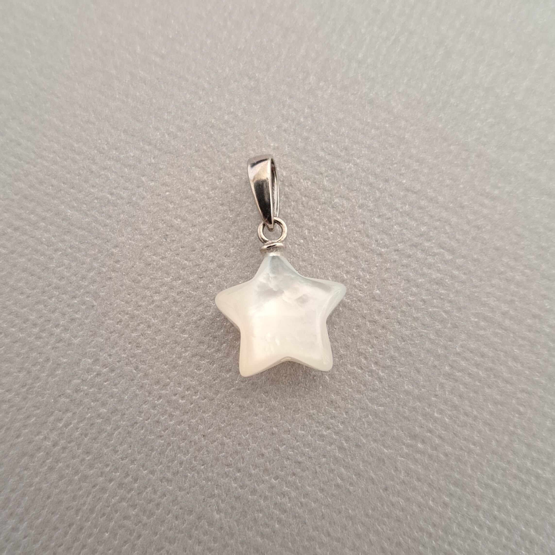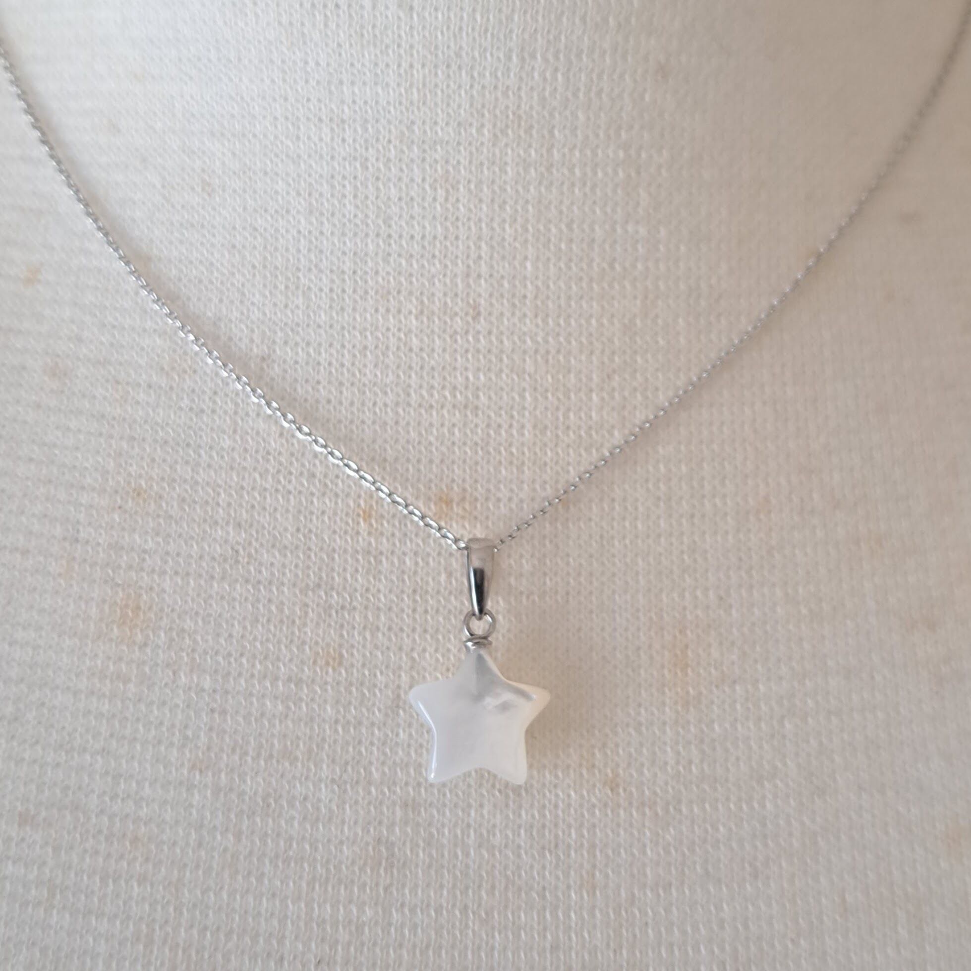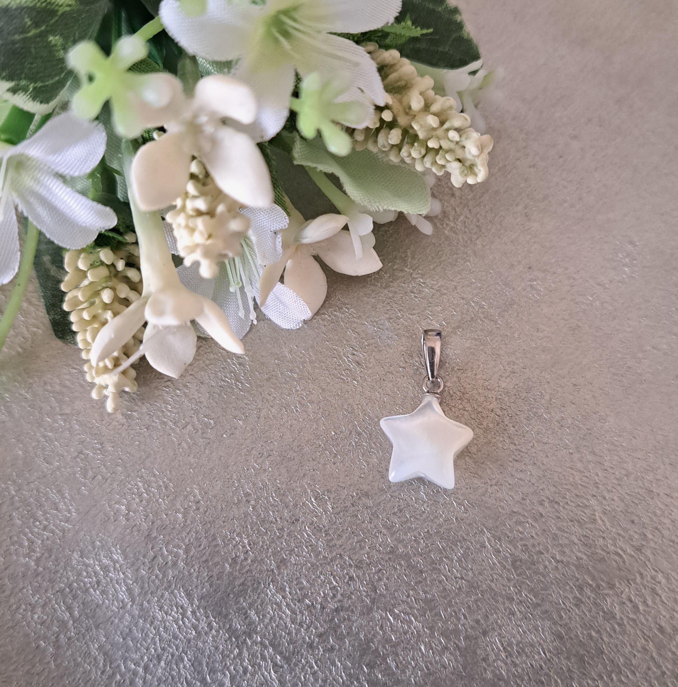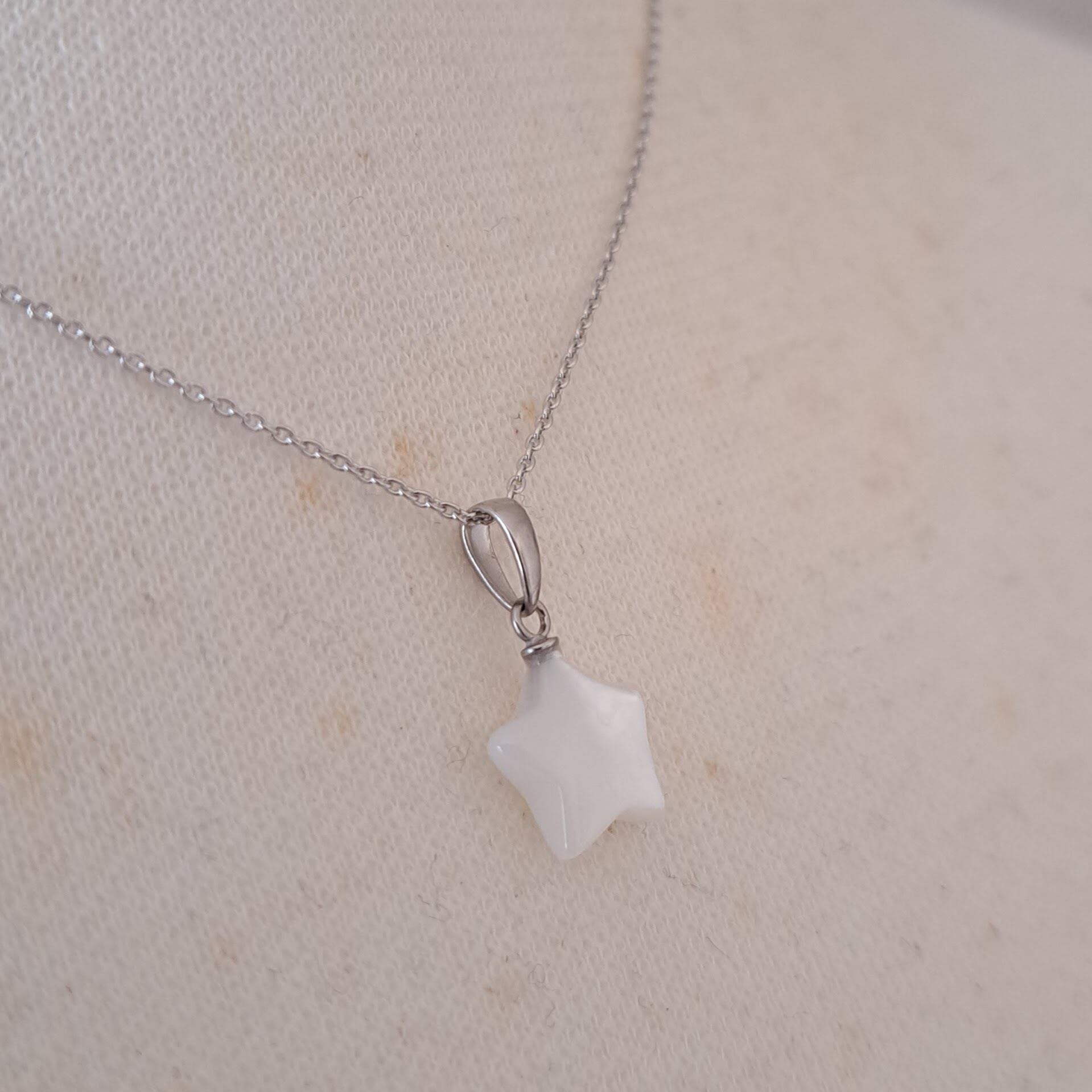 人気のモチーフのひとつでもある星の形のマザーオブパール(シェル)がシンプルなペンダントトップ。